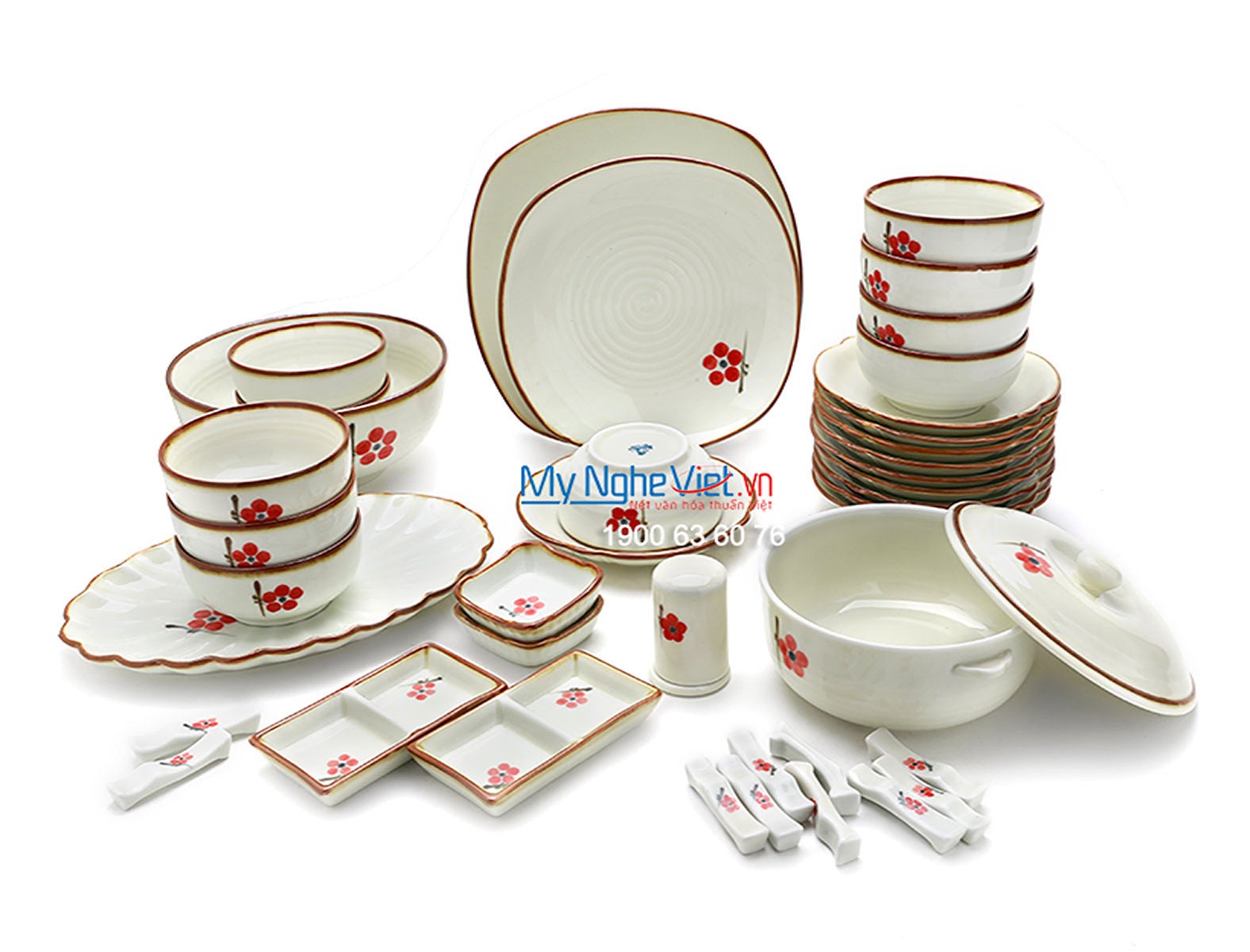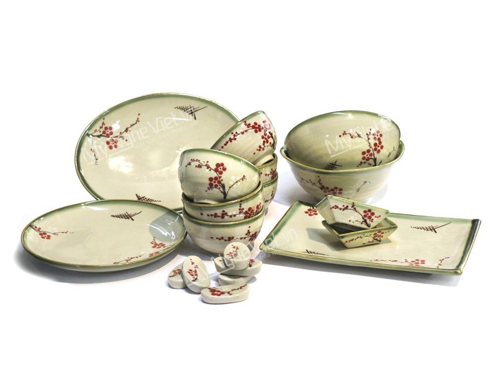 Bộ chén dĩa gốm Bát Tràng tại Mận Đỏ