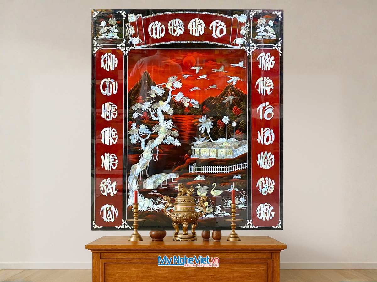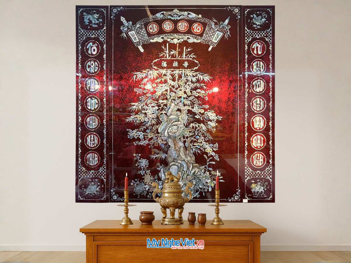 Hướng dẫn cách treo tranh liễn thờ sơn mài gia tiên chuẩn