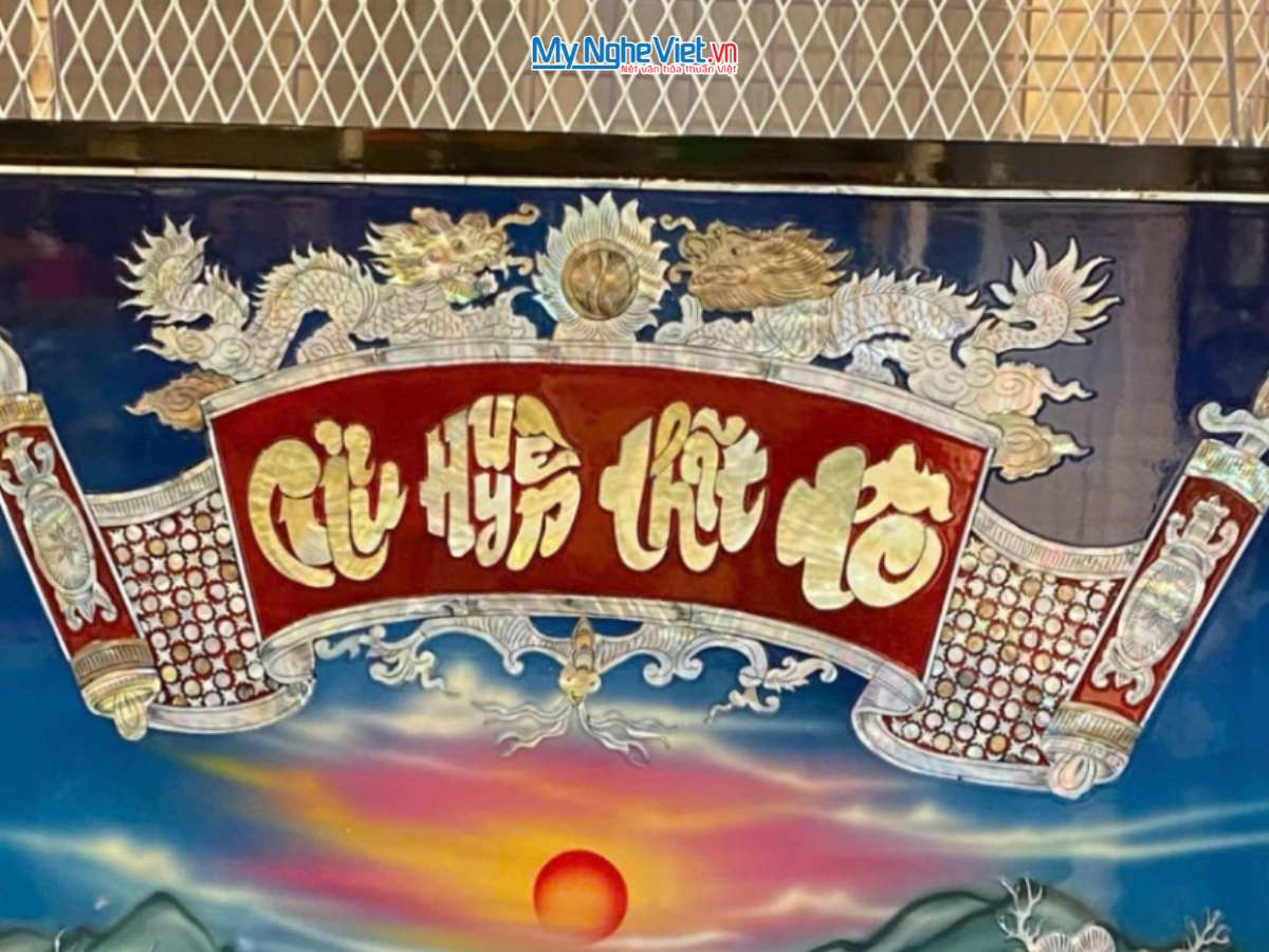 Kỹ thuật cẩn xà cừ (khảm trai): Sử dụng các loại vỏ ốc, vỏ trai có màu sắc tự nhiên rực rỡ để cắt tỉa tỉ mỉ theo từng nét chữ, từng chiếc vảy rồng rồi khảm chìm vào lớp sơn mài. Dưới ánh sáng của đèn phòng thờ hoặc nến, lớp xà cừ sẽ phản chiếu những dải màu sắc lung linh, huyền ảo.Từ đó, tạo nên vẻ đẹp độc bản vô cùng lộng lẫy mà không một loại vật liệu nhân tạo nào có thể sánh được.