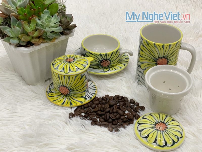 - Bộ trà/cà phê gốm sứ Bát Tràng vẽ tay: Thích hợp tặng mẹ hoặc cô giáo.