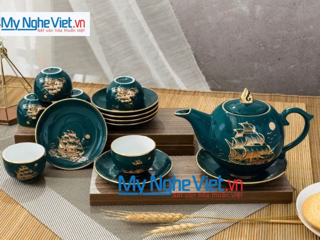 - Bình trà gốm Bát Tràng: Thực tế và bền đẹp, giúp không gian bếp thêm ấm cúng.