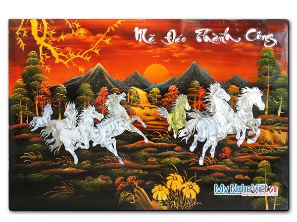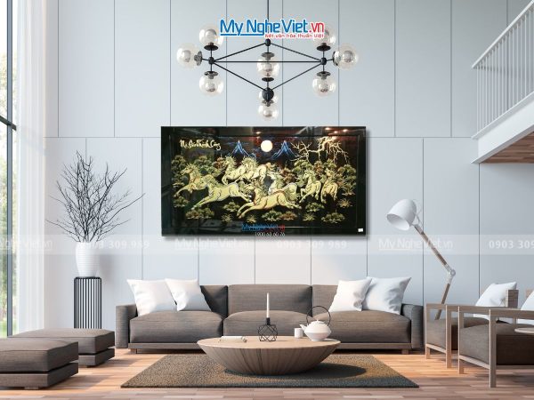 - Tranh sơn mài mã đáo thành công: Mang ý nghĩa thành công và may mắn, phù hợp làm quà tân gia cho bạn thân hoặc quà tân gia cho nam.