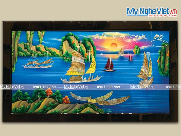 - Tranh sơn mài thuận buồm xuôi gió: Biểu tượng cho sự suôn sẻ, lý tưởng cho quà tân gia cho nữ hoặc quà tân gia cho người độc thân.