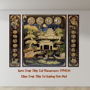 Liễn sơn mài thờ gia tiên trong không gian thờ gia đình Việt