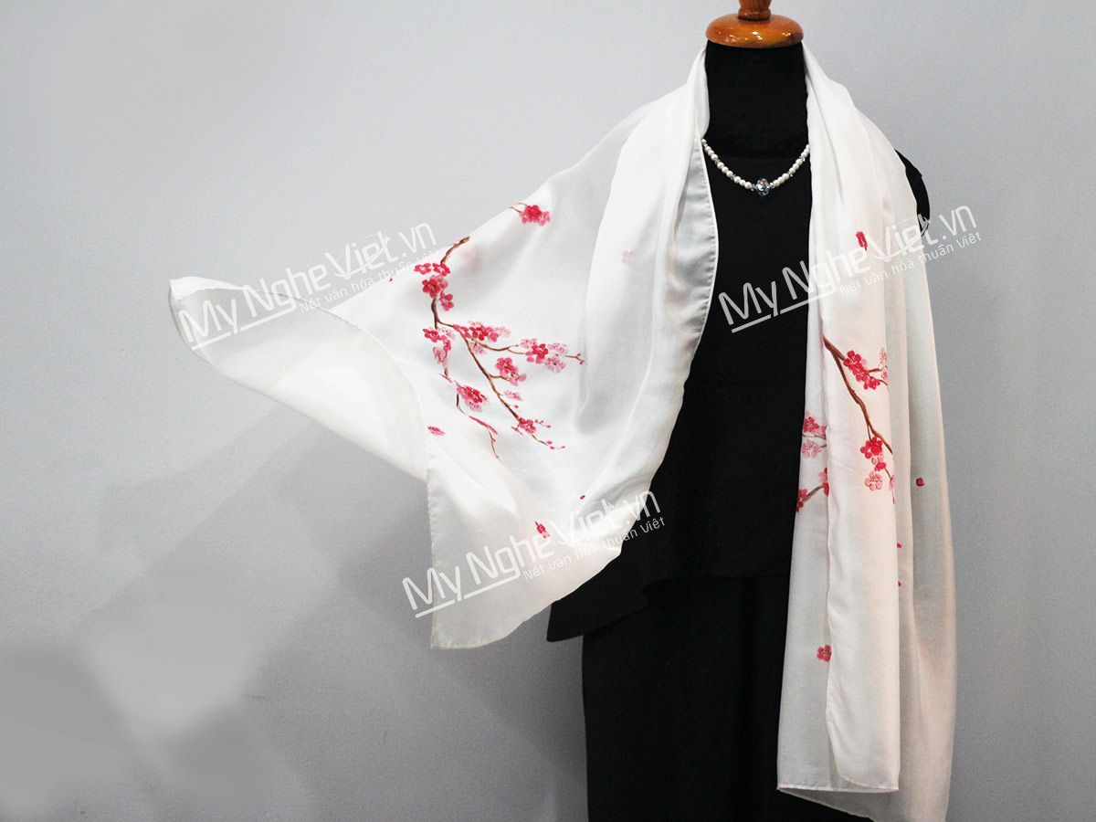 Những chiếc khăn choàng sẽ là món quà tri ân độc đáo cho khách hàng, giữa thời tiết mát mẻ hơi xe lạnh vào buổi đêm, choàng một chiếc khăn để vừa ấm lại là một sản phẩm trang trí vô cùng tinh tế làm say đắm bao lòng người. Những chiếc khăn choàng thêu hoa rất phù hợp cho không khí mùa thu.