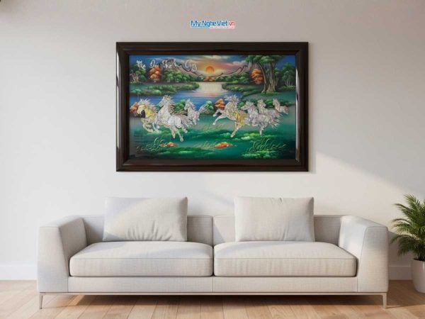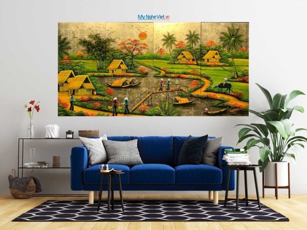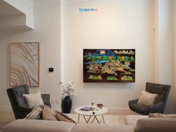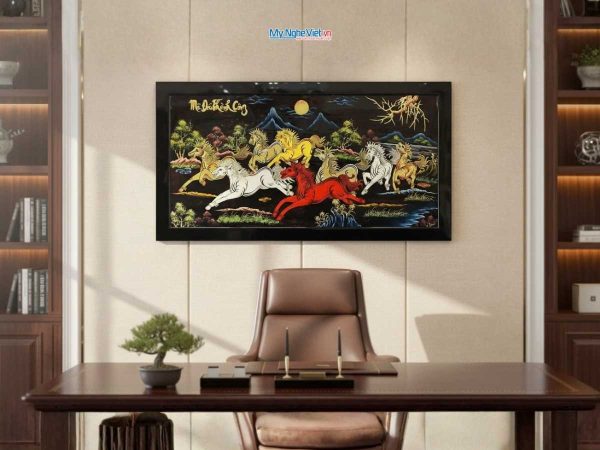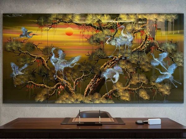 Sự kết hợp tinh hoa giữa nghệ thuật sơn mài truyền thống và kỹ thuật chế tác thủ công, tạo nên vật phẩm trang trí mang đậm bản sắc văn hóa Việt Nam.