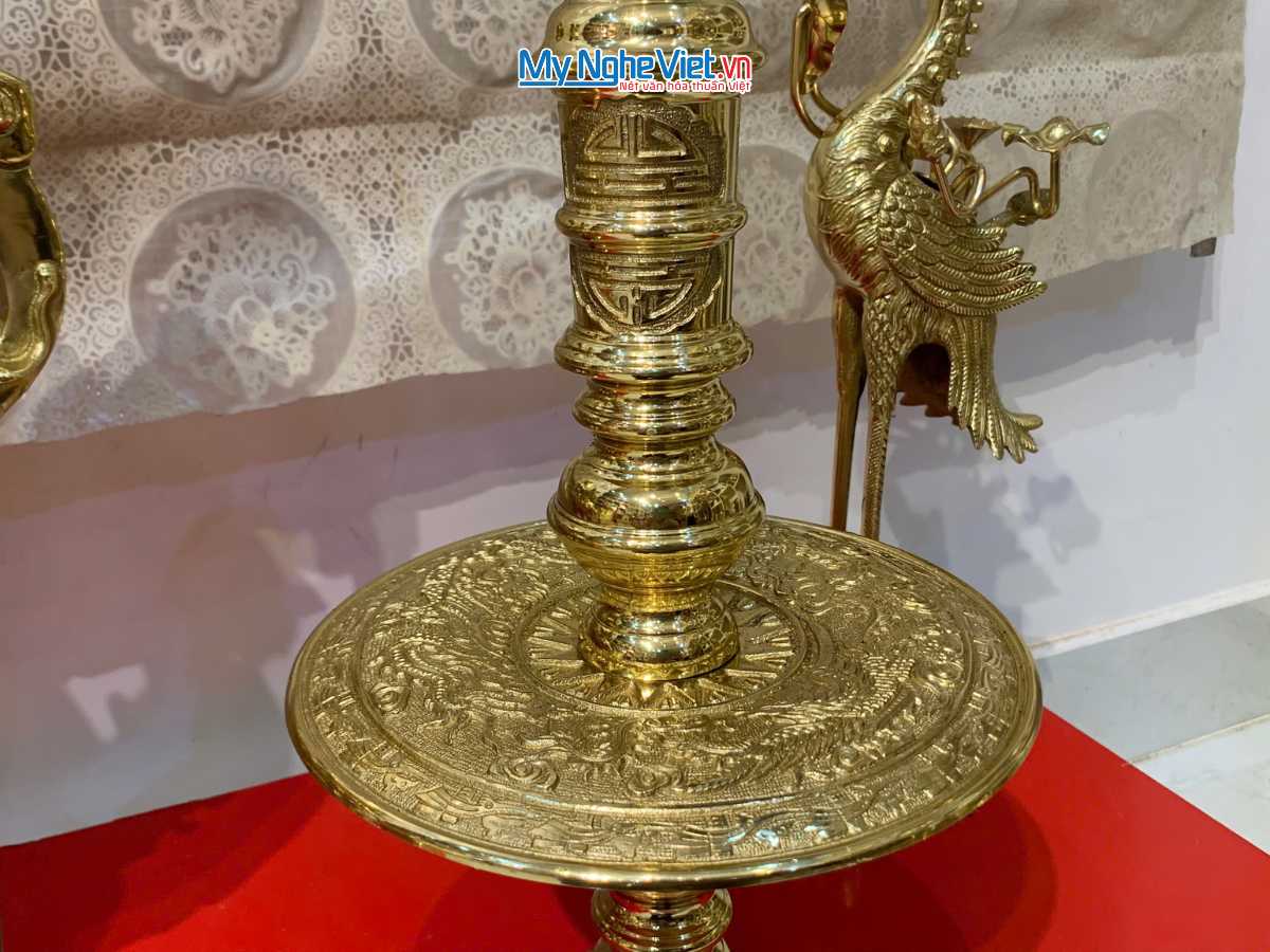 - 02 Chân nến: Chạm khắc tứ linh hoặc rồng phượng, mang lại ánh sáng chân lý cho không gian thờ.