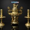 Ngay từ ánh nhìn đầu tiên, bộ ngũ sự này thu hút mọi sự chú ý bởi màu vàng bóng lâu đời nhưng vô cùng sang trọng. Khác với màu vàng bóng loáng thông thường, sắc vàng đậm tạo cảm giác trầm mặc, ấm áp và có chiều sâu, cực kỳ phù hợp với không gian thờ cúng truyền thống.