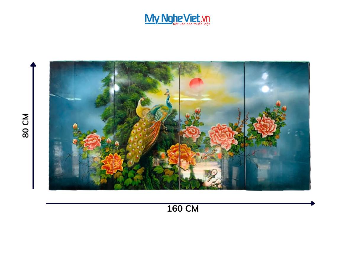 • Bộ sản phẩm bao gồm: 01 bộ tranh sơn mài công hồng
