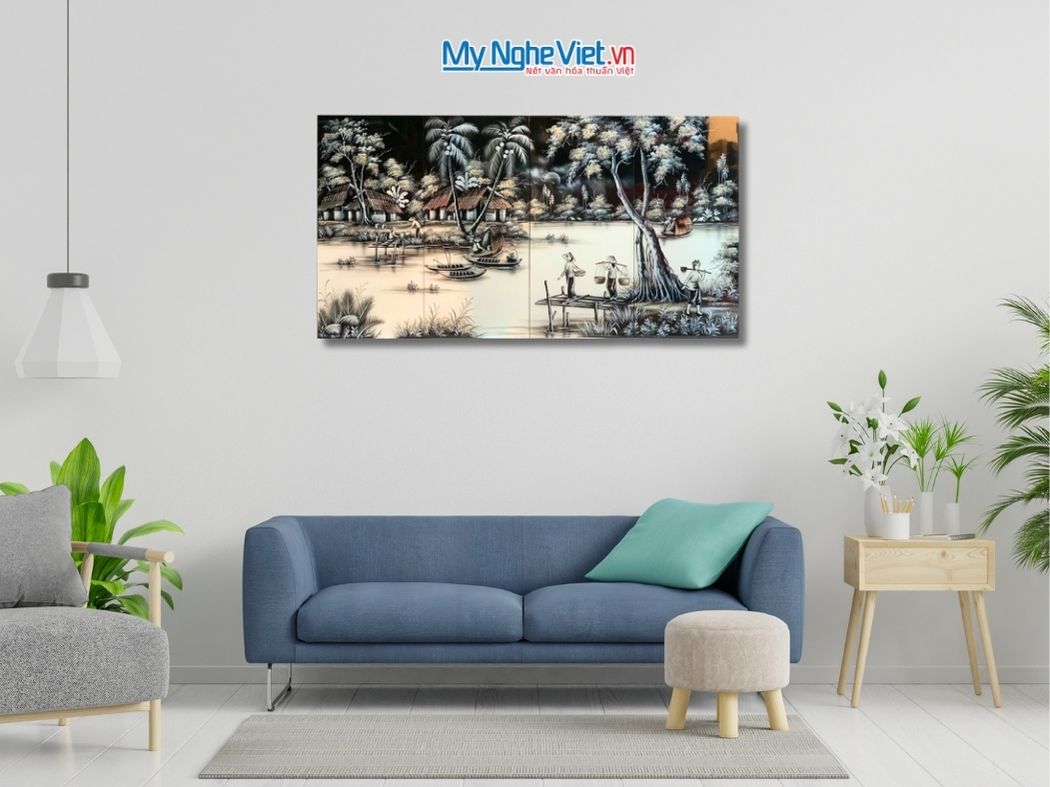 Sở hữu một bức Tranh Sơn Mài Đồng Quê không chỉ là trang trí, mà còn là cách lưu giữ và tôn vinh những giá trị văn hóa truyền thống. Những hình ảnh quen thuộc như cây đa, bến nước, sân đình, cánh đồng lúa chín, hay cảnh sinh hoạt đầm ấm (tát nước, chăn trâu, đi chợ) mang lại: