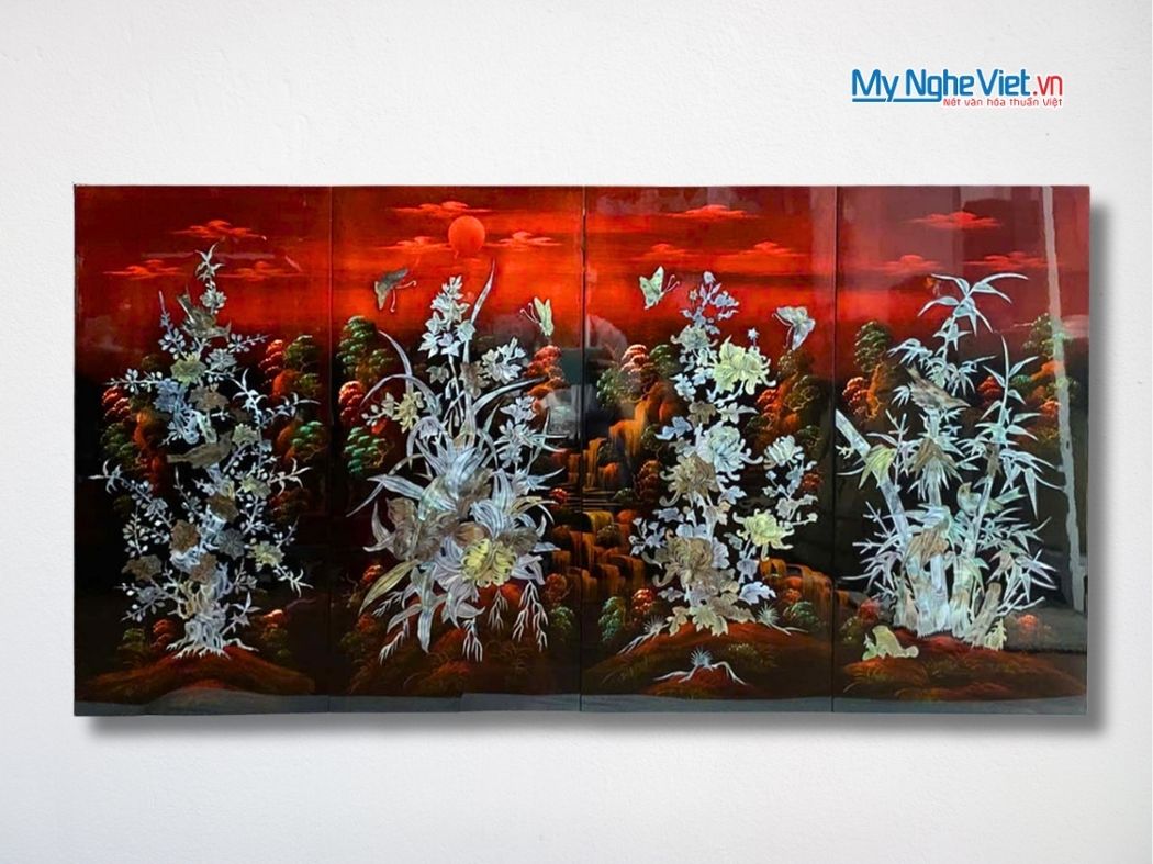 Hãy sở hữu ngay bộ tranh sơn mài Mai Lan Cúc Trúc độc đáo này để tô điểm không gian sống và chiêu tài lộc quanh năm!