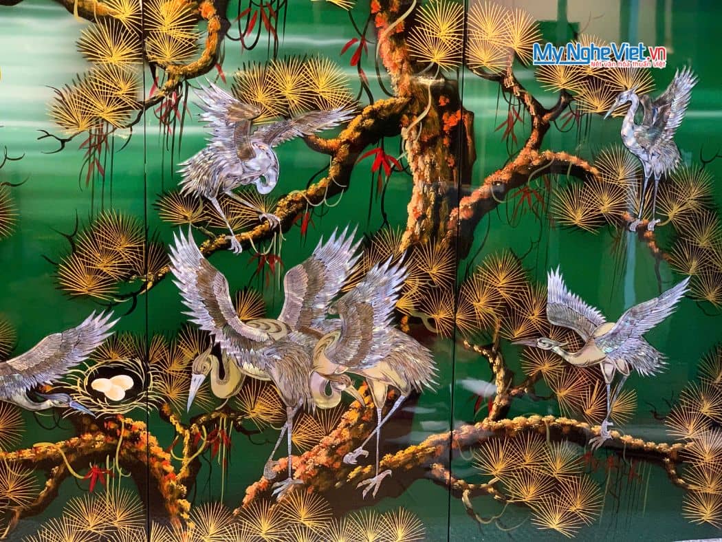 • Kỹ thuật cẩn ốc nổi tinh xảo, tạo hiệu ứng 3D sống động, khẳng định giá trị mỹ thuật cao.