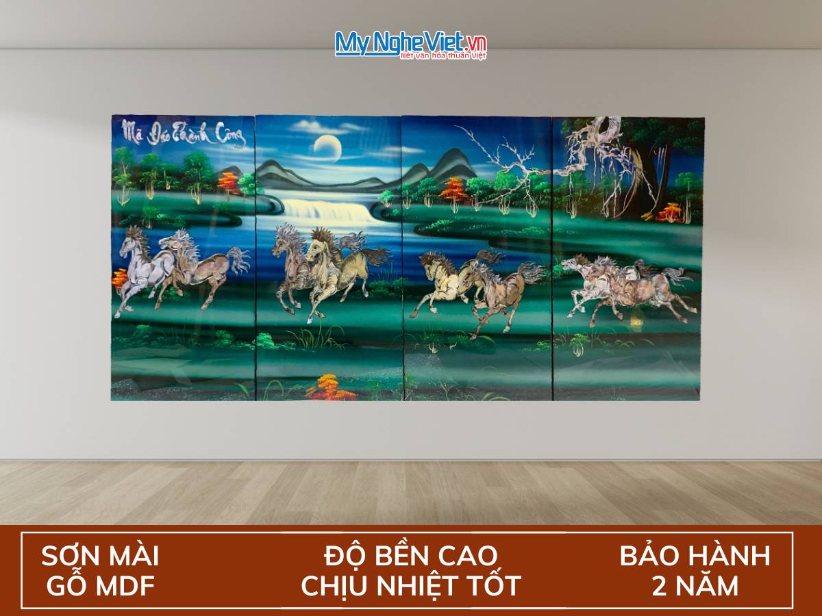 Tranh sơn mài không chỉ là một món đồ trang trí, mà còn là biểu tượng của văn hóa và truyền thống Việt Nam. Với lịch sử hàng nghìn năm, kỹ thuật sơn mài đã được truyền từ đời này sang đời khác, tạo nên những tác phẩm có chiều sâu và sự tinh tế hiếm có. Bức tranh Mã Đáo Cẩn Chìm nền Xanh của chúng tôi không chỉ mang ý nghĩa tài lộc, thành công mà còn thể hiện sự cẩn trọng, tỉ mỉ trong từng nét chạm khắc.