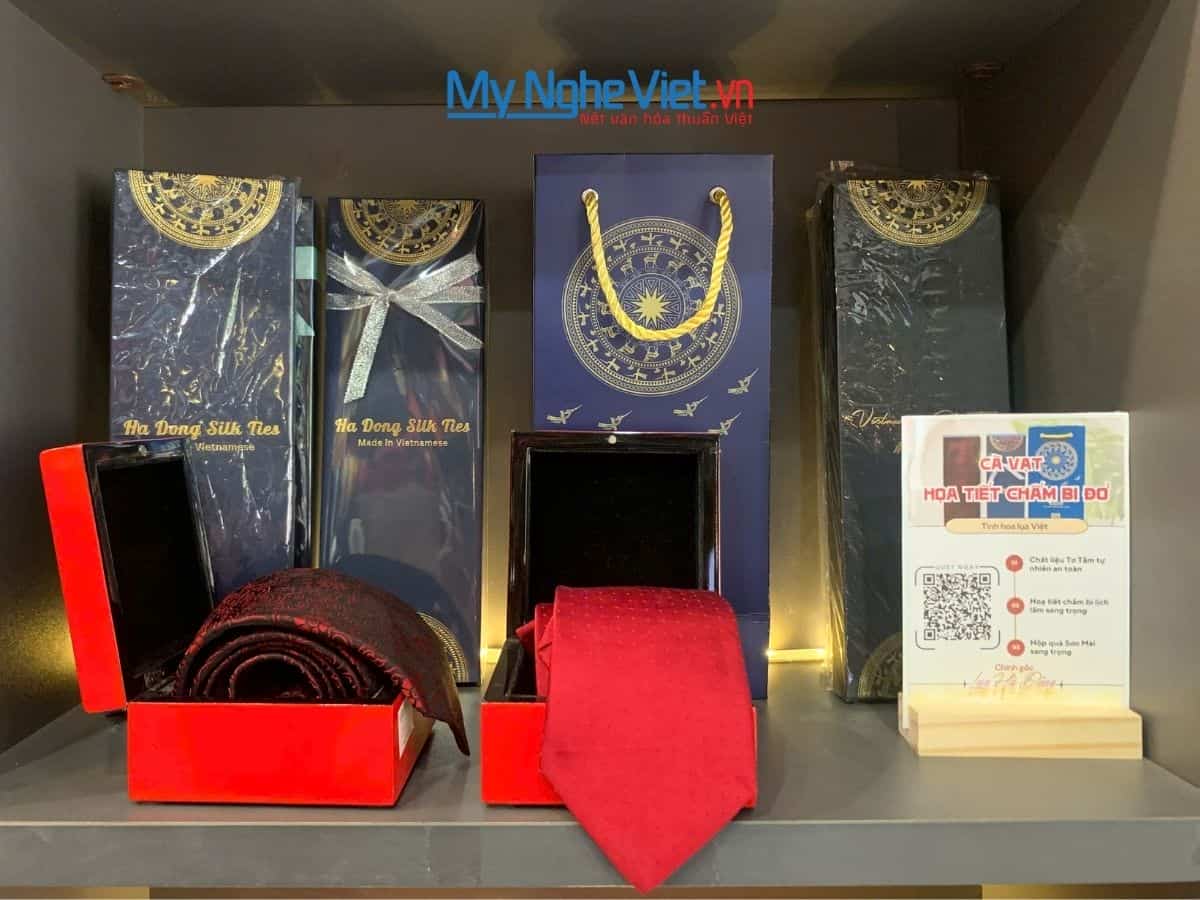 Kích thước: Hộp sơn mài: 11x11xH6(cm); Caravat: 148cm