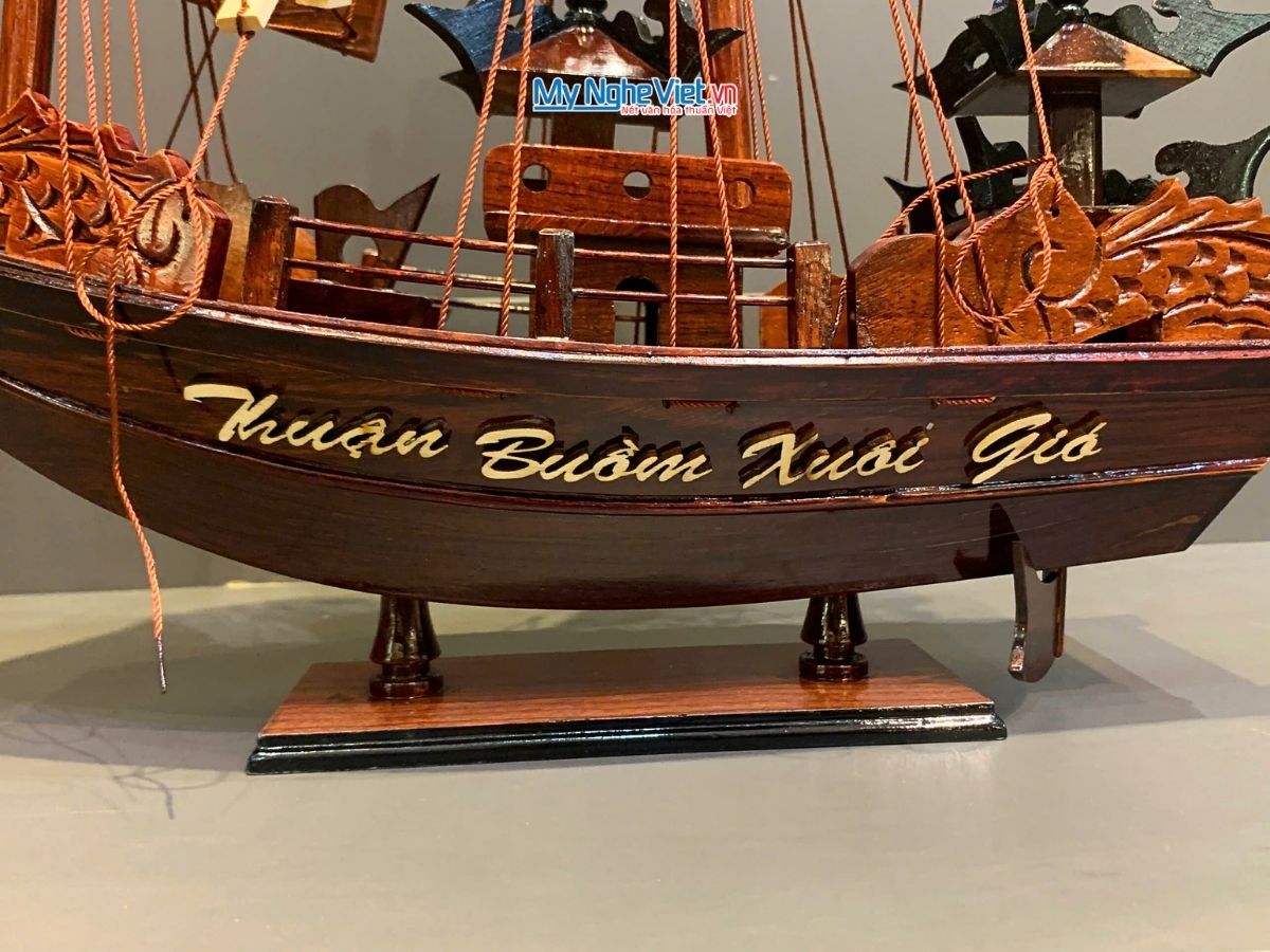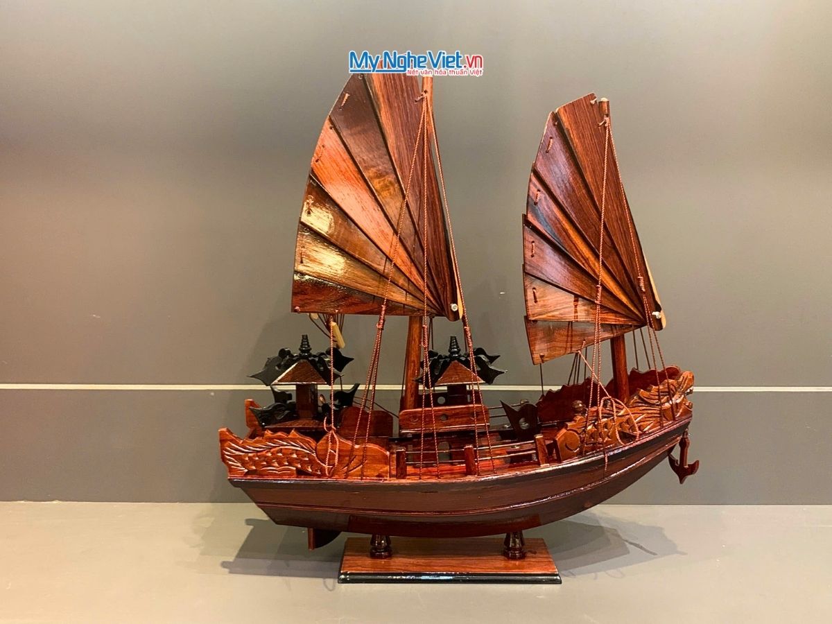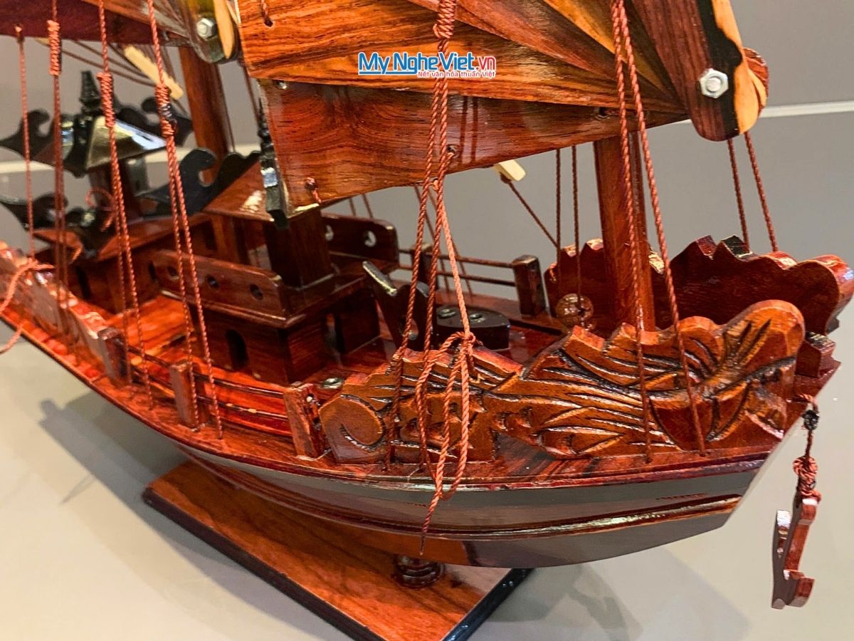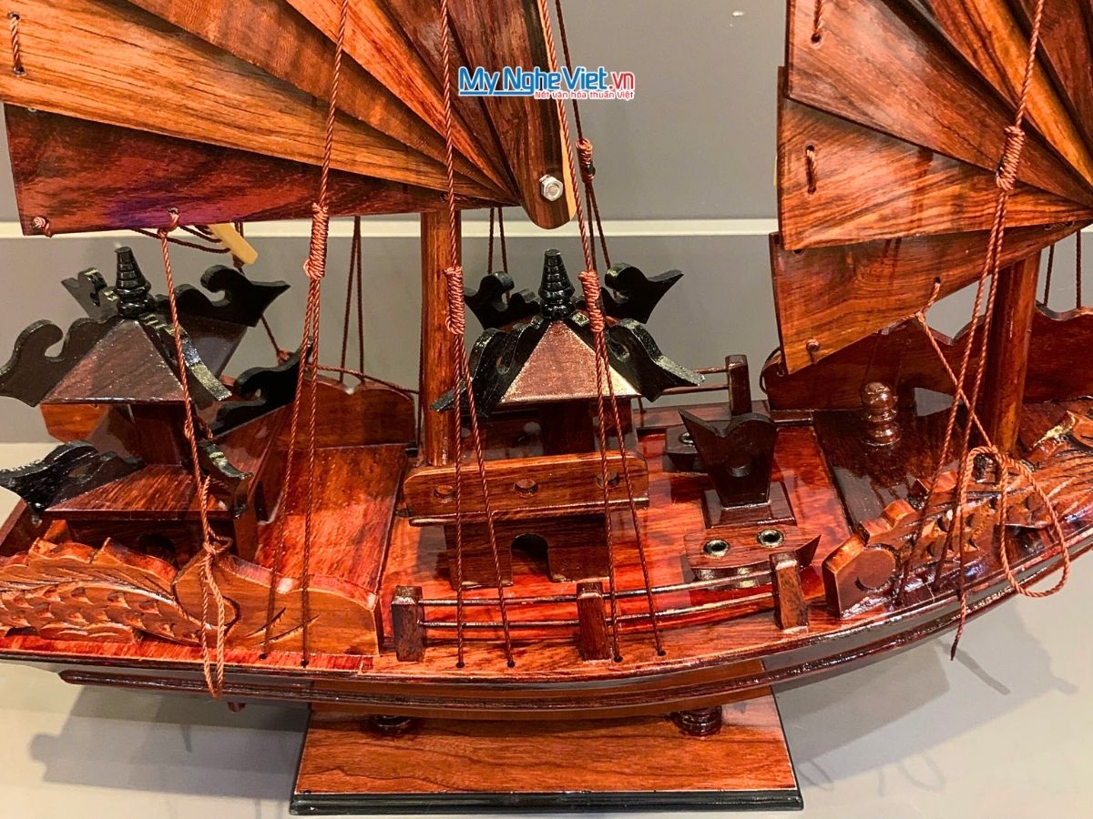 Mô hình thuyền rồng được làm bằng tay và qui trình sản xuất mô hình này y như kỹ thuật đóng thuyền thật với từng nan gỗ nhỏ được ghép lên trên khung xương, mặt sàn được ghép bằng từng thanh gỗ xẻ nhỏ theo tỉ lệ của mô hình. Cấu trúc lá buồm, các dây buồm được chế tác tỉ mỉ bằng gỗ làm cho mô hình càng thêm chắc chắn và mạnh mẽ.