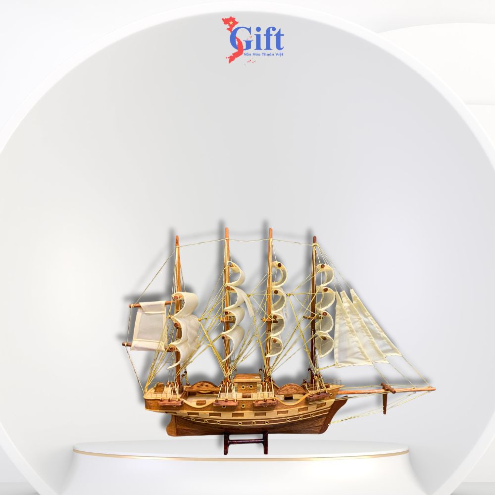 Each ship is meticulously handcrafted by skilled artisans, using natural wood, premium sail fabric, and precisely modelled rigging to replicate the original vessel’s details. The combination of warm wood tones and the elegant white sails creates a harmonious and sophisticated look, making it perfect for display in living rooms, offices, or corporate lobbies.