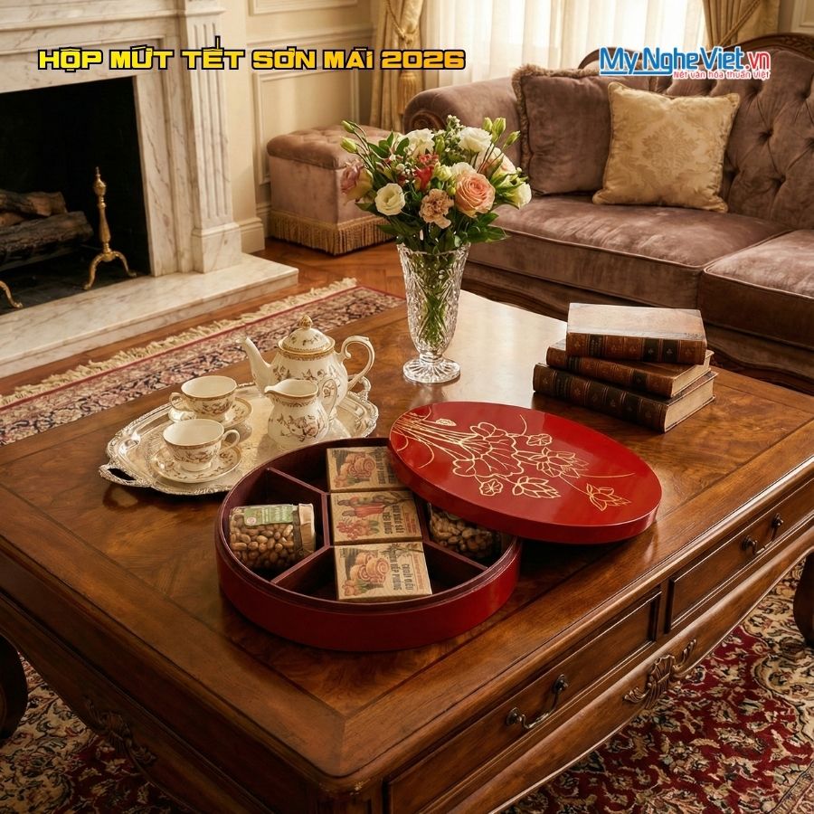 - Ứng Dụng Đa Dạng (Trang Trí & Tặng Quà): Ngoài việc dùng để bày biện mứt kẹo trong ngày Tết, hộp mứt tết sơn mài nền đỏ còn là món đồ trang trí nội thất tinh tế, làm nổi bật không gian phòng khách của bạn. Đặc biệt, nó còn là lựa chọn quà tặng cao cấp, ý nghĩa để biếu tặng đối tác, bạn bè, người thân trong dịp đầu xuân, thể hiện sự trân trọng và gu thẩm mỹ đẳng cấp của người tặng.