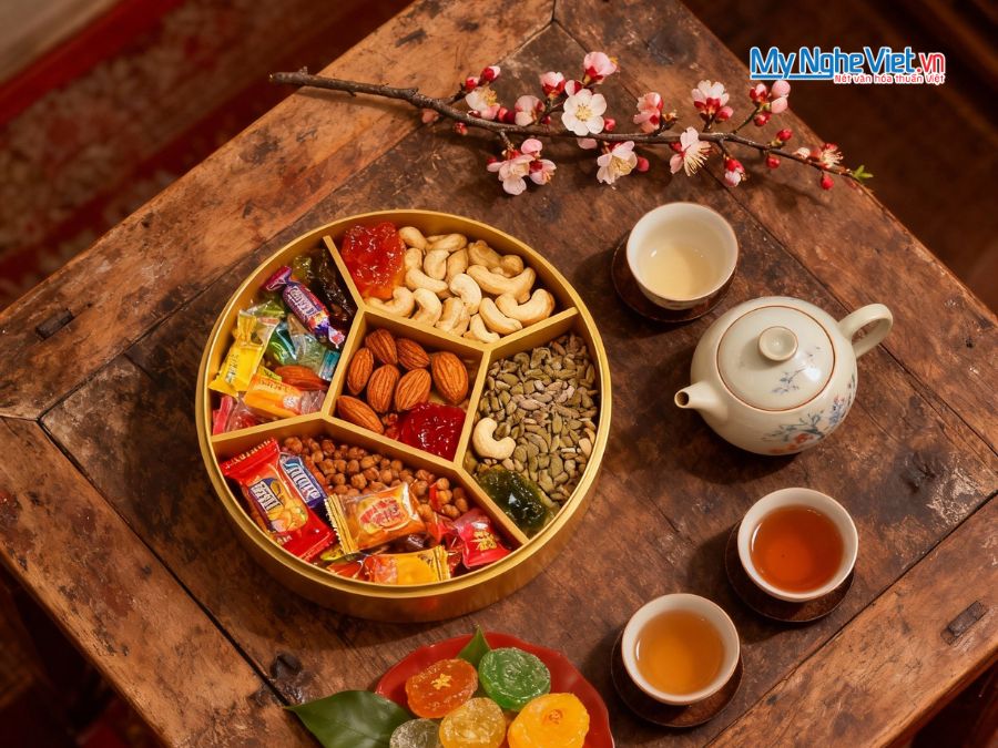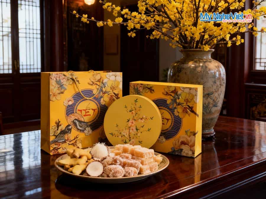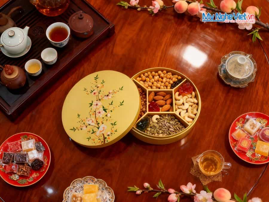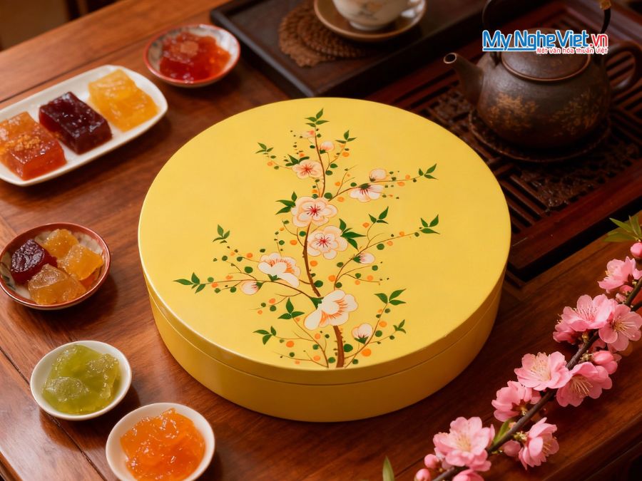 • Bộ sản phẩm bao gồm: 1 Hộp Mứt Sơn Mài 5 Ngăn