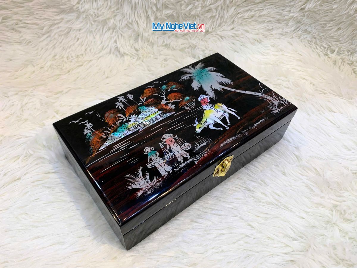 Hãy lựa chọn ngay chiếc Hộp trang sức sơn mài đồng quê cẩn ốc để tôn vinh bộ sưu tập trang sức của bạn bằng vẻ đẹp ấm áp, tinh tế và bền vững của nghệ thuật truyền thống Việt Nam.