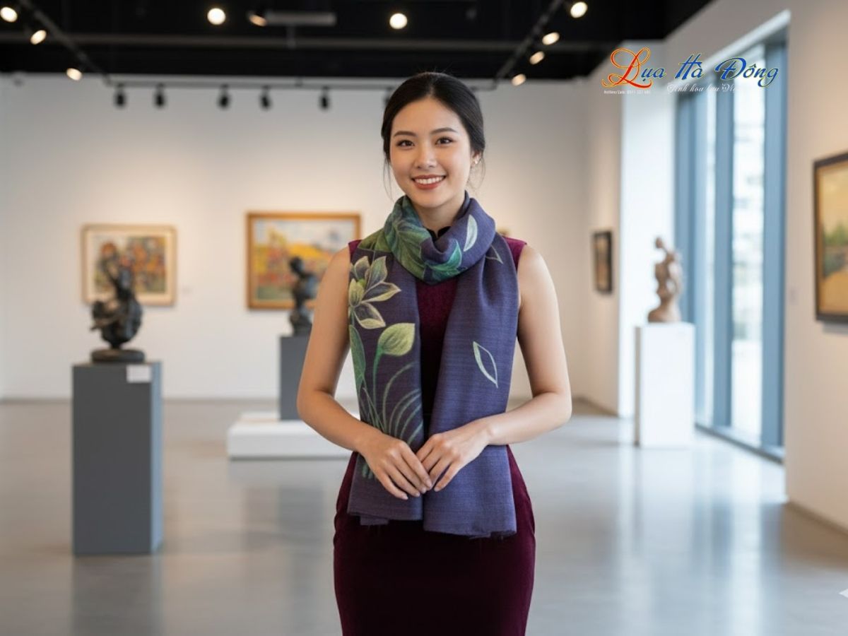 - Phụ kiện thời trang các mùa: Khăn lụa tơ tằm vẽ tay có thể sử dụng như một phụ kiện thời trang phù hợp cho các mùa, tô điểm cho trang phục thêm phần sang trọng, quý phái.