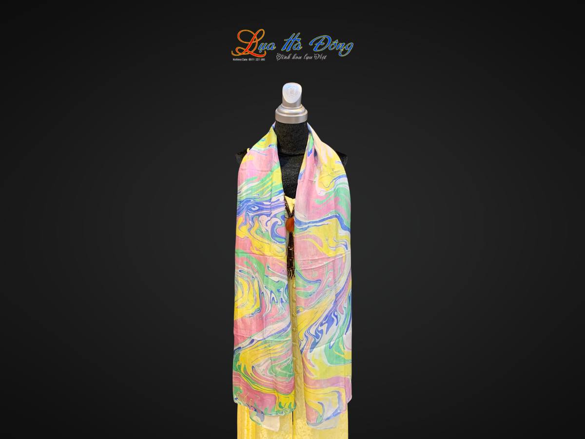 • Mỗi chiếc khăn lụa vẽ thủy ấn là một tác phẩm duy nhất. Những mảng màu, đường nét mềm mại, uyển chuyển và hòa quyện vào nhau tạo nên một vẻ đẹp trừu tượng và đầy tính nghệ thuật.