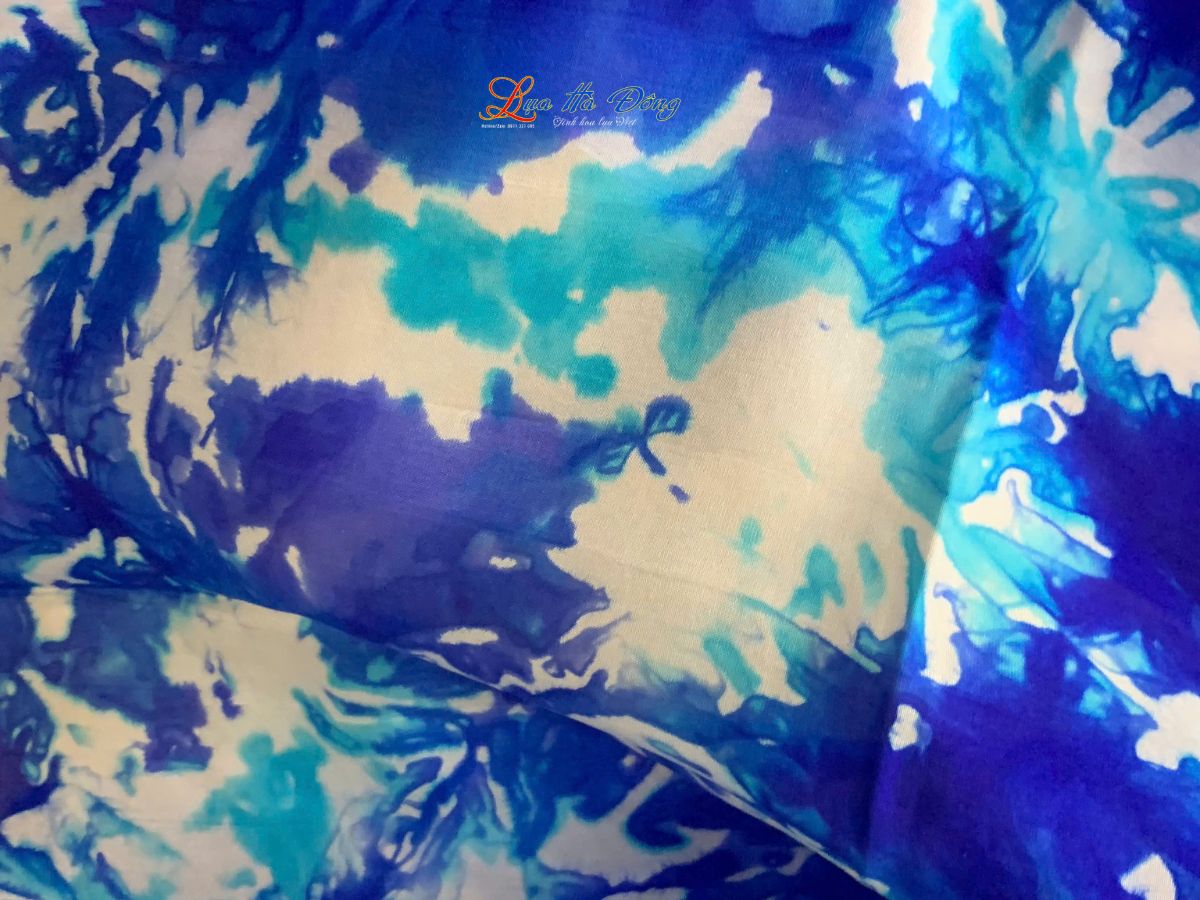 Quy Trình Tạo Nên Chiếc Khăn Tơ Tằm Loang 100% Silk Màu Xanh Dương Tuyệt Đẹp