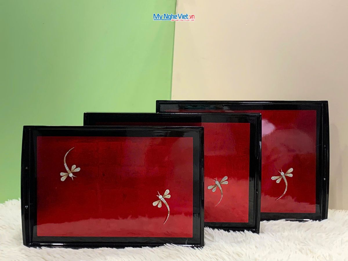 • Bộ sản phẩm bao gồm: 01 Khay sơn mài nền đỏ dát lá vàng