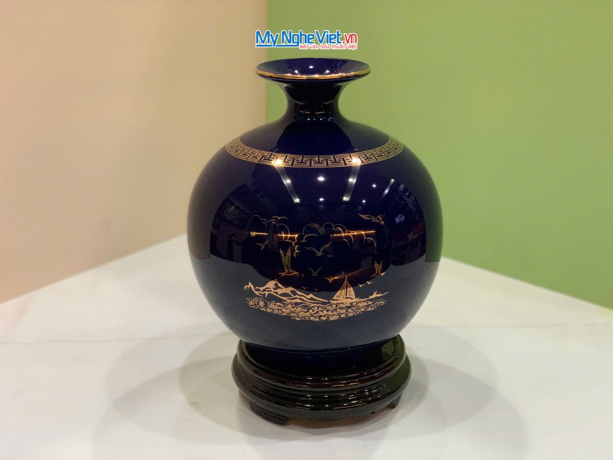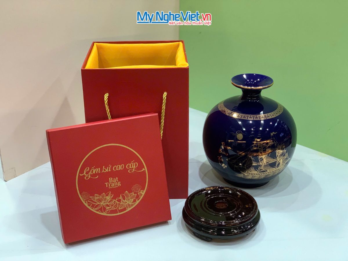 Mẫu Bình thu tài hút lộc Bát Tràng đặc biệt thu hút với họa tiết “Thuận Buồm Xuôi Gió” được vẽ tay hoặc khắc nổi tinh tế. Hình ảnh cánh buồm căng gió vươn ra biển lớn là biểu tượng phong thủy mạnh mẽ, mang ý nghĩa công việc làm ăn suôn sẻ, mọi sự hanh thông, thu về nhiều tài lộc.