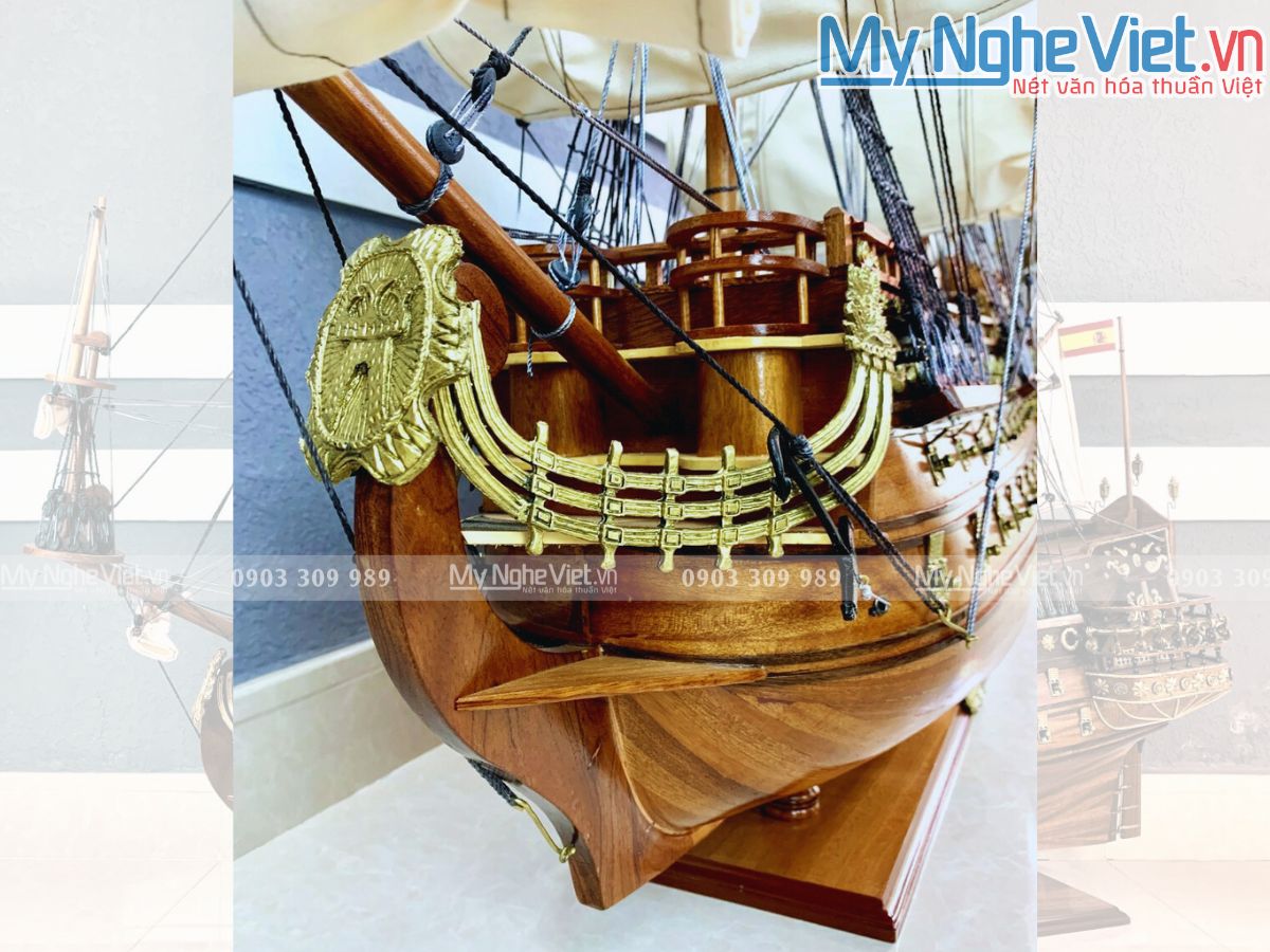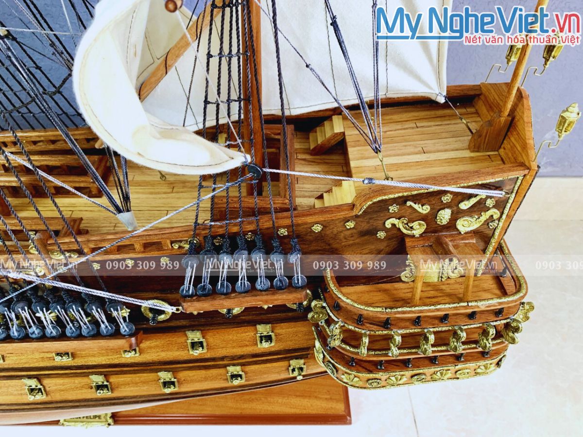 Mô hình thuyền chiến cổ Sanfelip là một tác phẩm nghệ thuật thủ công tinh xảo, được chế tác từ gỗ căm xe cao cấp. Mô hình được thiết kế tỉ mỉ đến từng chi tiết, tái hiện chân thực hình ảnh con tàu chiến cổ Sanfelip huyền thoại của Tây Ban Nha.