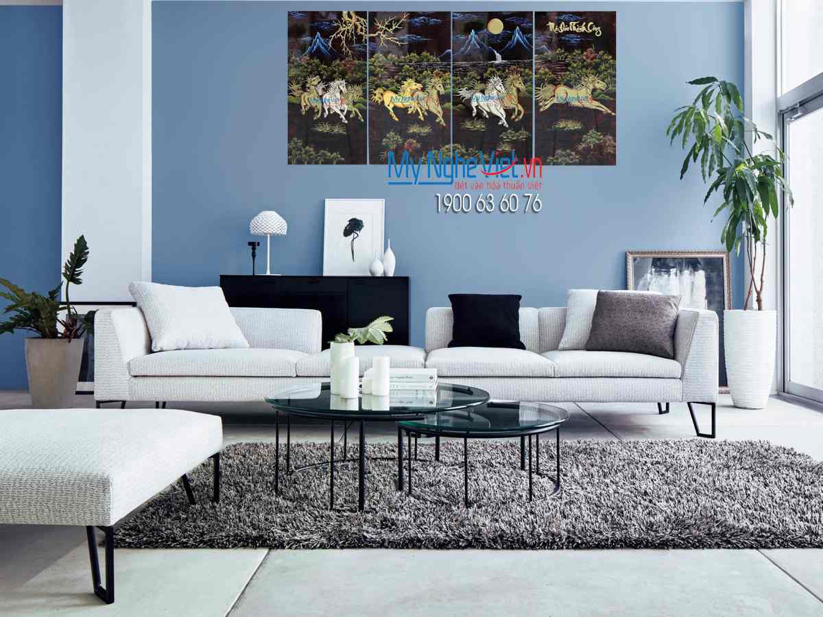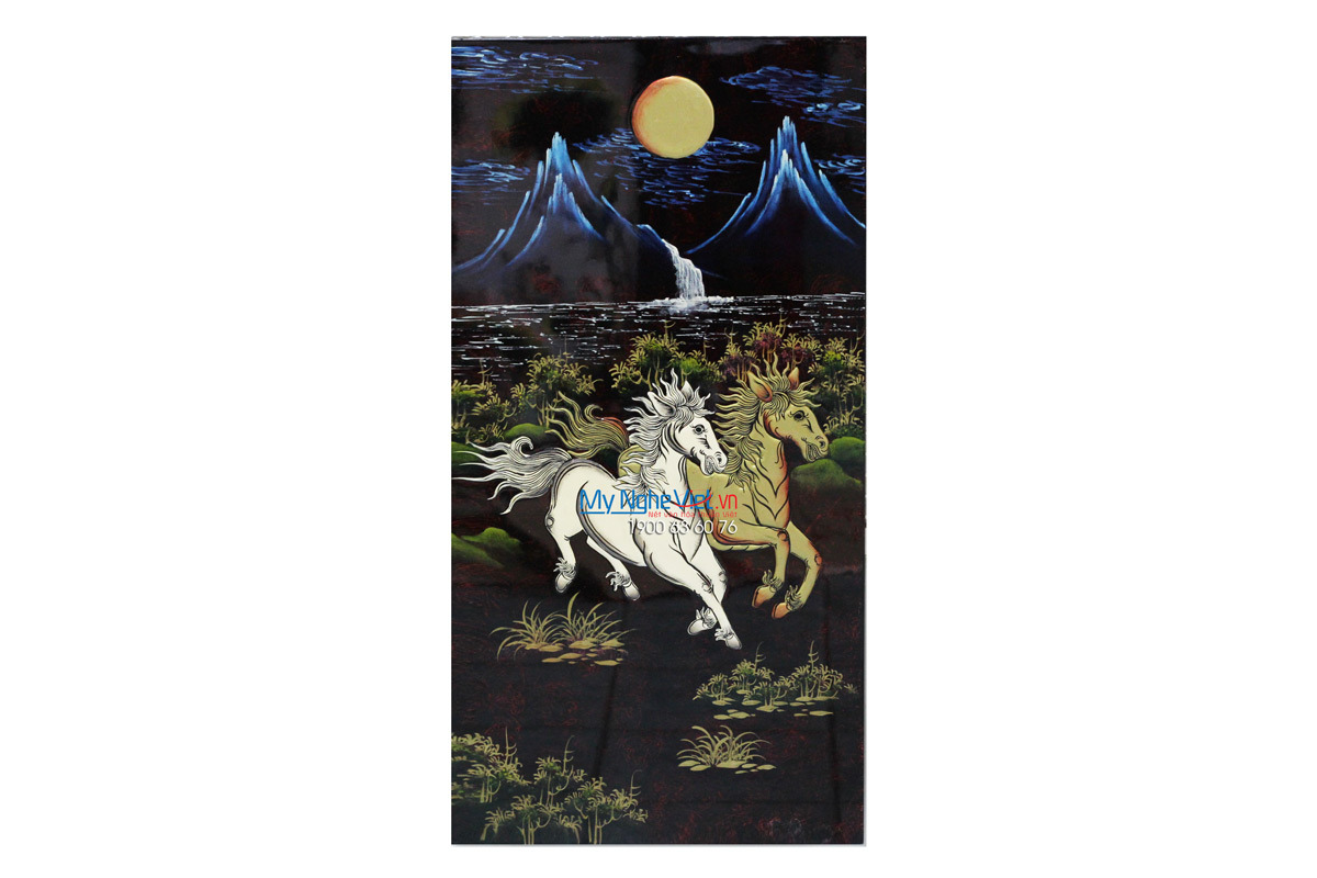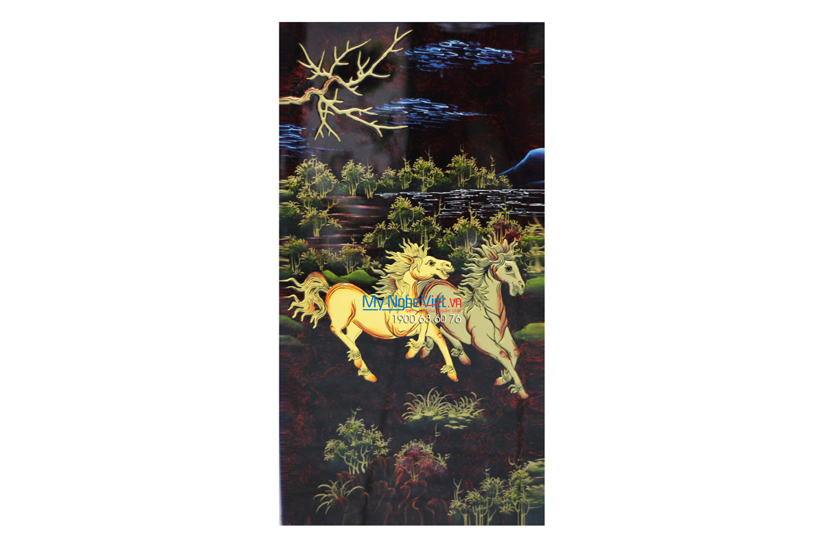 Tranh phong thủy mã đáo thành công thể hiện sự sắc sảo đến từng chi tiết của các nghệ nhân sơn mài qua sự sung mãn của những chú ngựa mạnh mẽ mang đến sự phát lộc trong làm ăn, thành công trong cuộc sống.