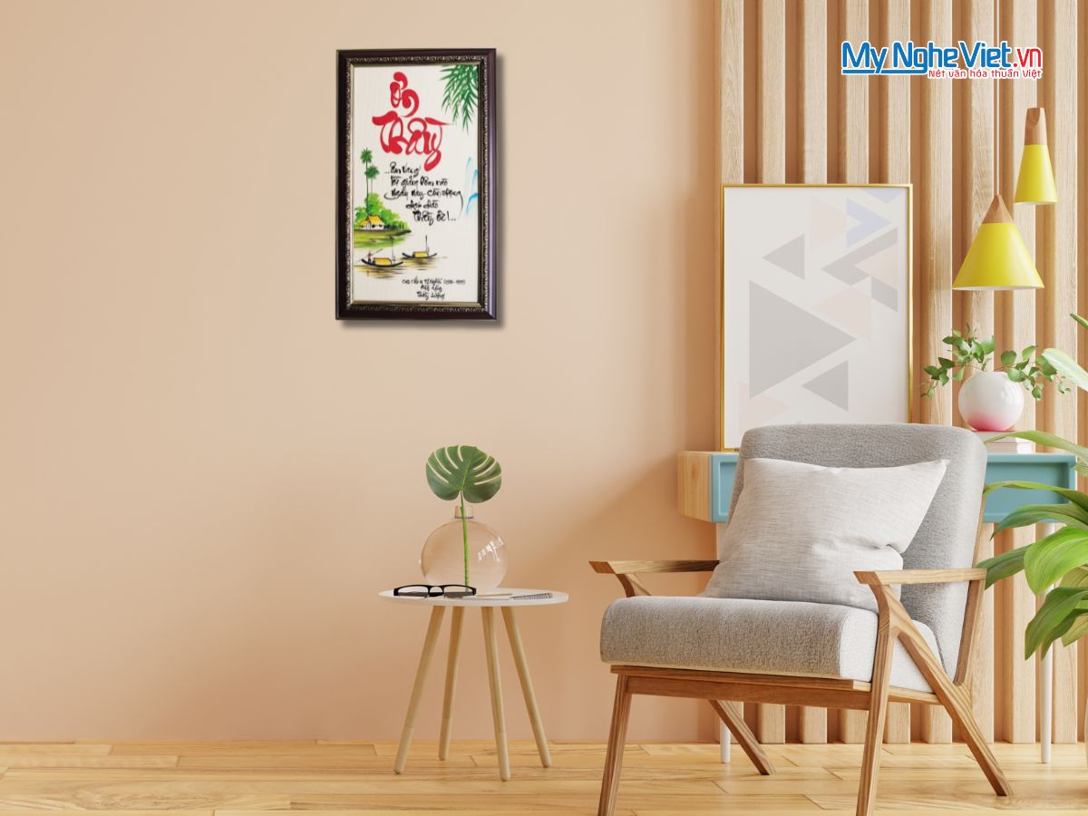 Chất liệu: tranh thư pháp trên nền giấy mỹ thuật, khung gỗ.