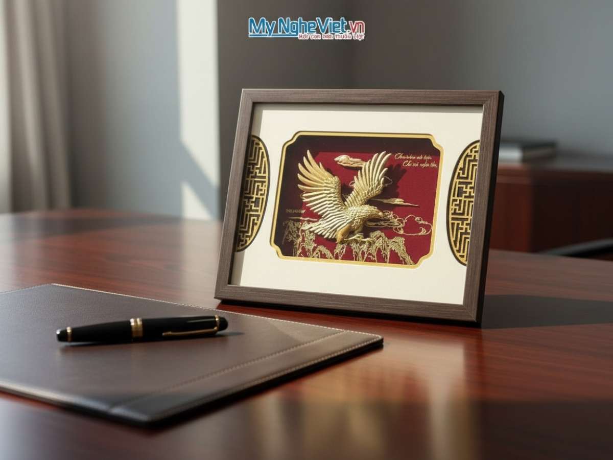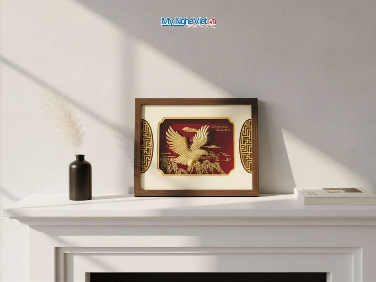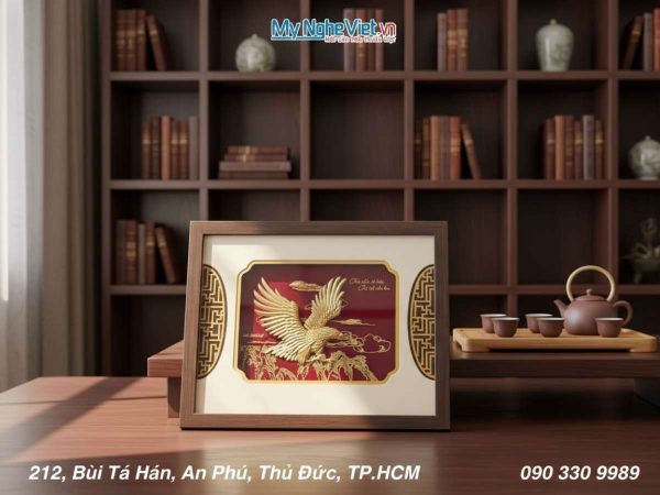Tranh Đại Bàng Dát Vàng Để Bàn từ làng nghề Đại Bái, Bắc Ninh là một lựa chọn hoàn hảo.