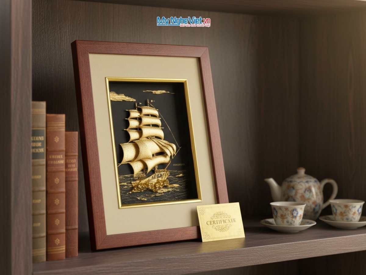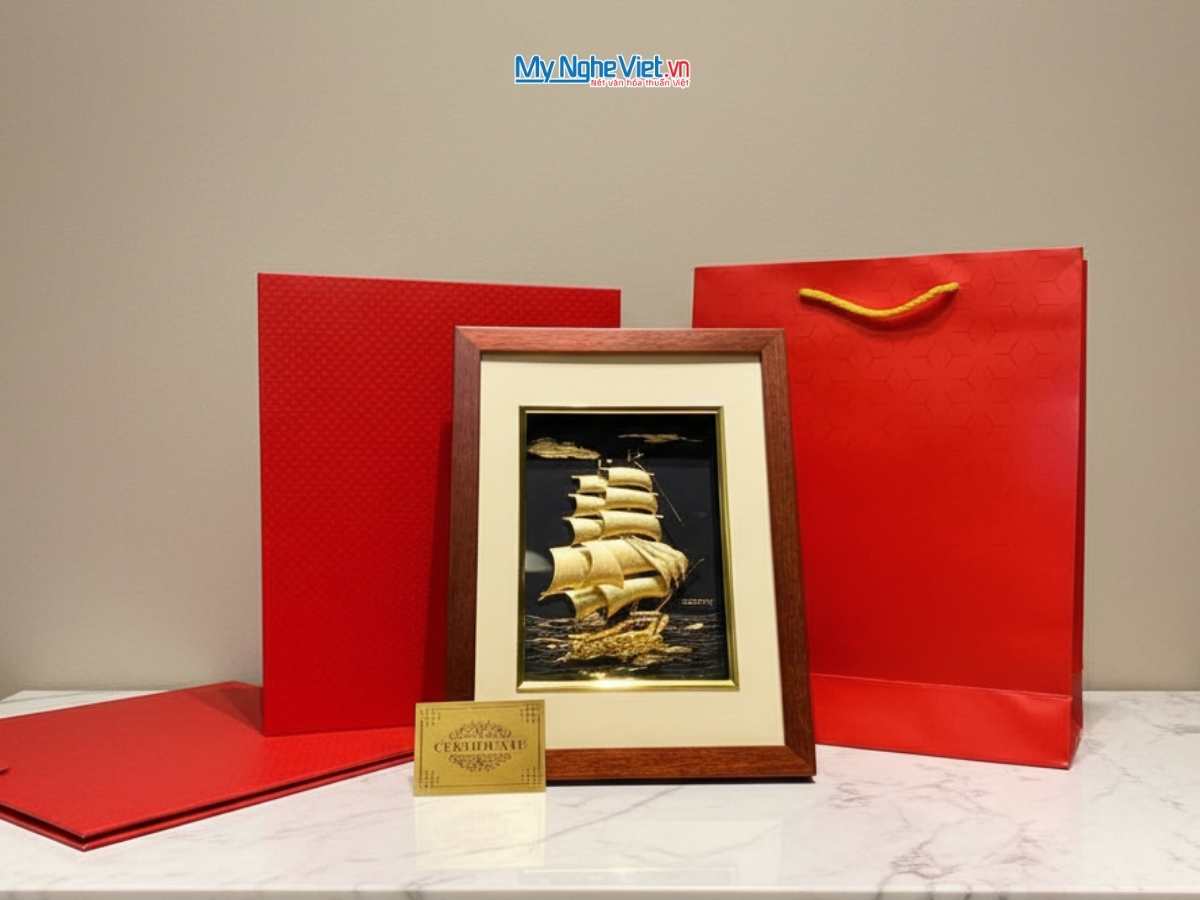 • Tranh thuận buồm dát vàng, mang lại may mắn, tài lộc, quà tặng khai trương, tân gia ý nghĩa.