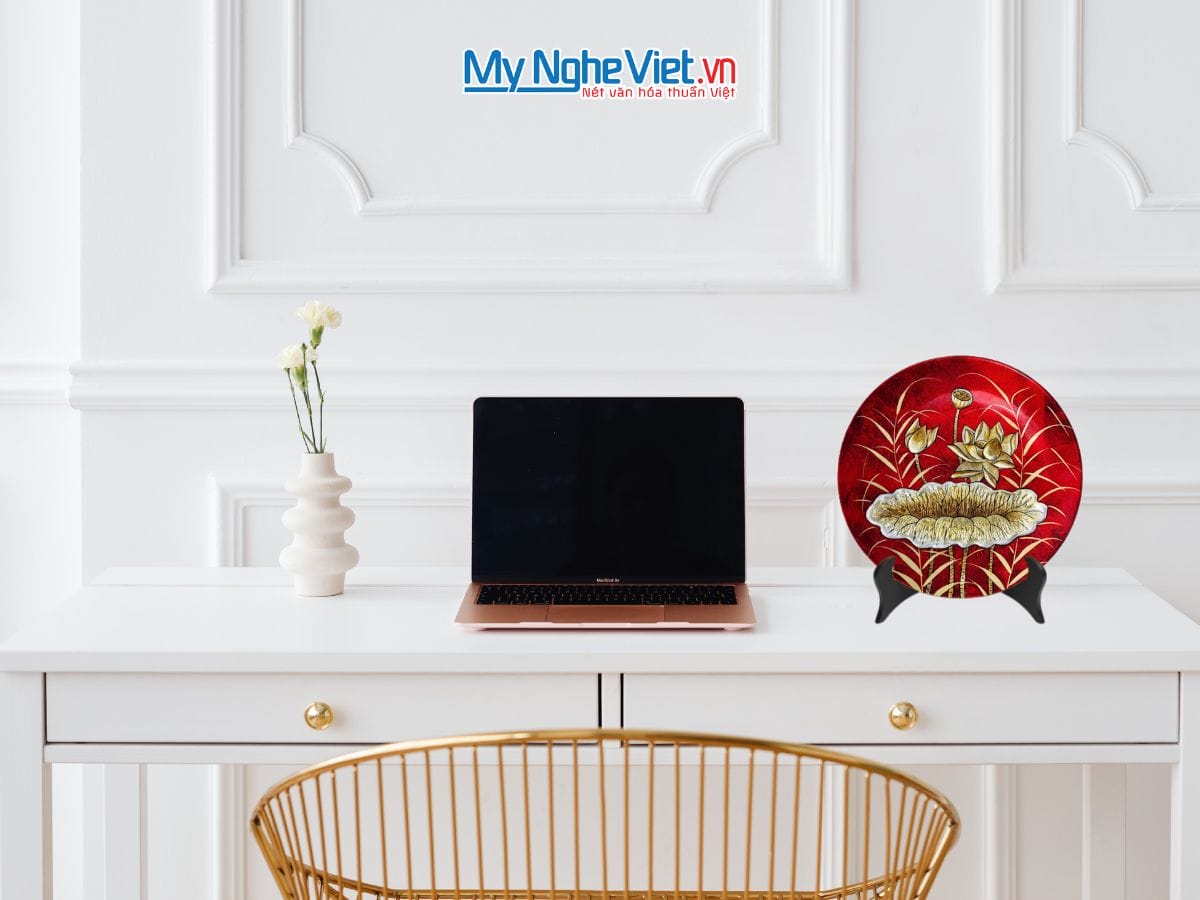 Đặc biệt, hình ảnh hoa sen trên đĩa sơn mài không chỉ đẹp về mặt thị giác mà còn mang ý nghĩa sâu sắc. Hoa sen là quốc hoa, biểu tượng của sự thanh cao, thuần khiết và sức sống mãnh liệt. Việc sở hữu một chiếc Tranh đĩa hoa sen trong nhà sẽ mang lại cảm giác an yên, đồng thời thu hút vượng khí, tài lộc cho gia chủ theo quan niệm phong thủy.