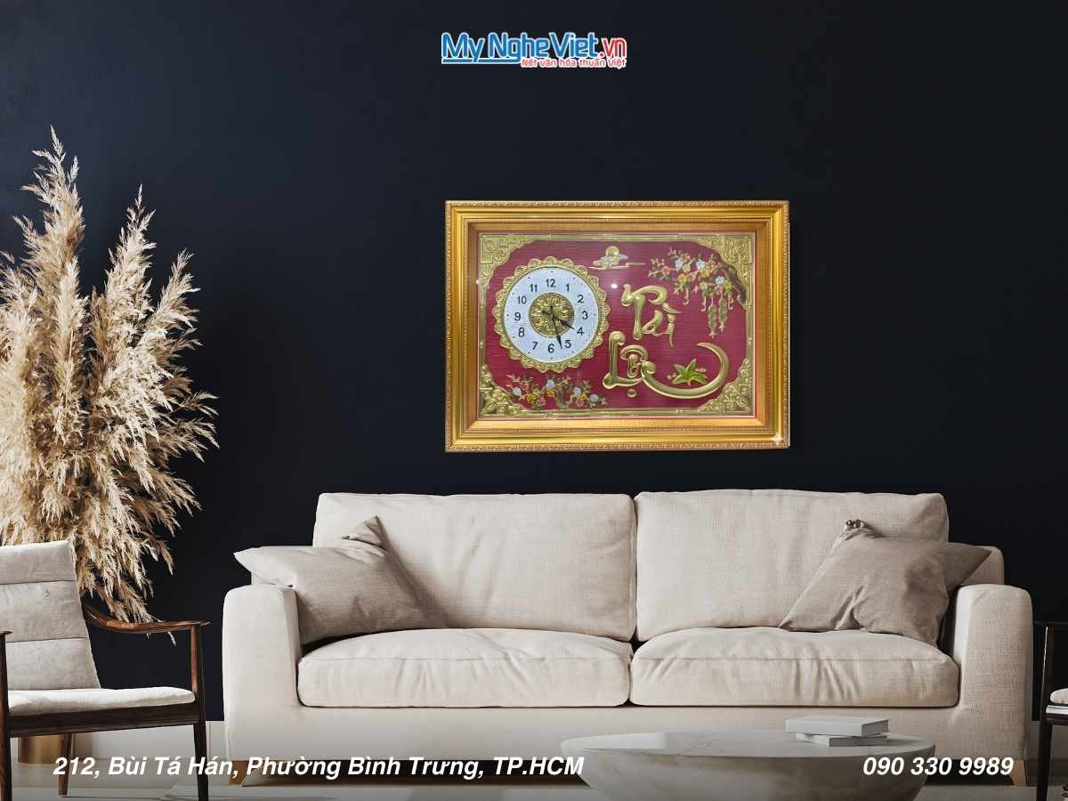 Mỹ Nghệ Việt tự hào giới thiệu: “Tài Lộc Trong Tầm Tay: Tranh Đồng Chữ Tài Lộc Kết Hợp Đồng Hồ – Biểu Tượng May Mắn và Thịnh Vượng”