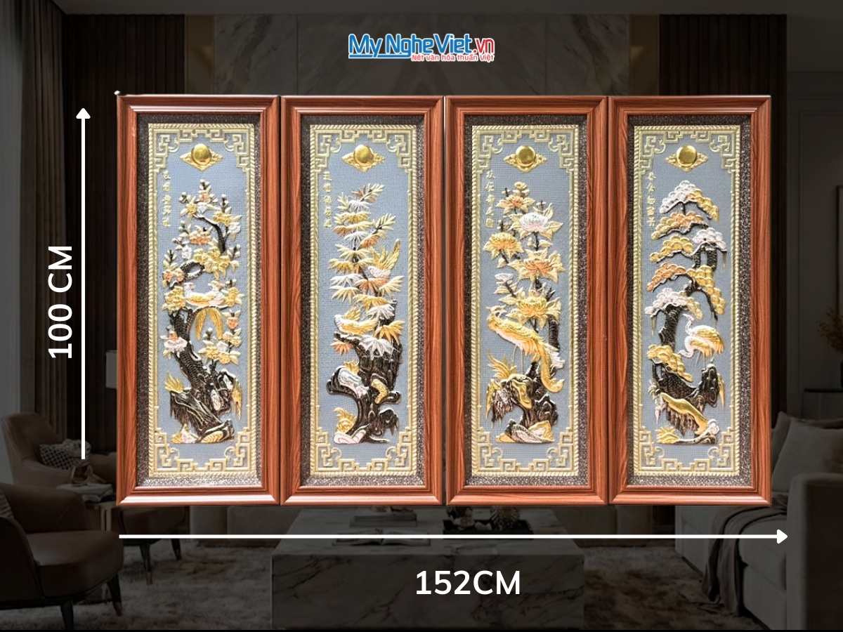 - Thiết kế đa dạng, phong phú: Tranh tứ quý tùng cúc trúc mai Đại Bái có nhiều kích thước, mẫu mã khác nhau, phù hợp với mọi không gian trưng bày.