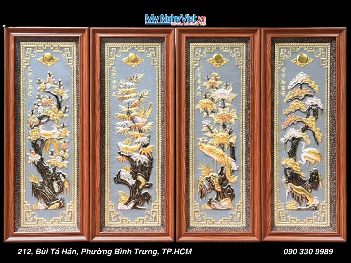 ranh đồng Đại Bái từ lâu đã nổi tiếng với vẻ đẹp tinh xảo, sang trọng và ý nghĩa phong thủy sâu sắc. Trong số các chủ đề tranh đồng được ưa chuộng nhất, tranh tứ quý tùng cúc trúc mai luôn chiếm vị trí đặc biệt bởi giá trị nghệ thuật và ý nghĩa tượng trưng cao đẹp.