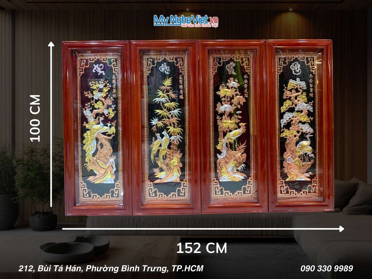- Thiết kế đa dạng, phong phú: Tranh tứ quý tùng cúc trúc mai Đại Bái có nhiều kích thước, mẫu mã khác nhau, phù hợp với mọi không gian trưng bày.