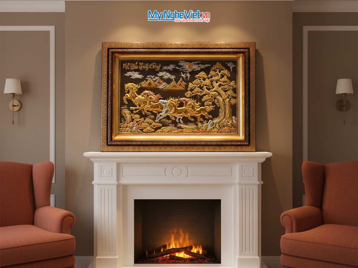 Bức tranh “Mã Đáo Thành Công” không chỉ là một tác phẩm trang trí mà còn mang ý nghĩa phong thủy sâu sắc. Với hình ảnh tám con ngựa dũng mãnh phi nước đại, bức tranh tượng trưng cho: