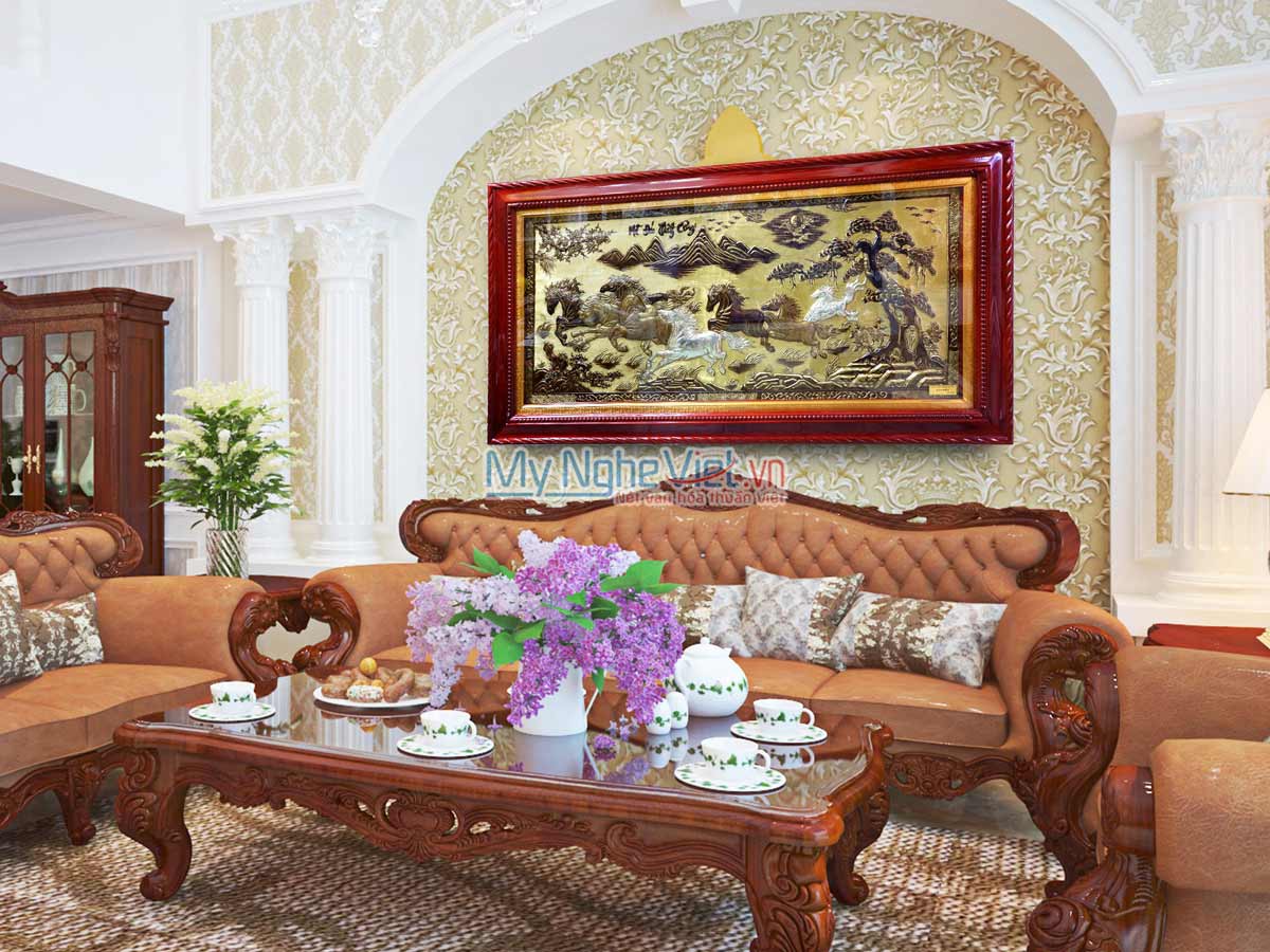 • Bộ sản phẩm bao gồm: 01 Tranh Đồng Mã Đáo cạo màu đèn led