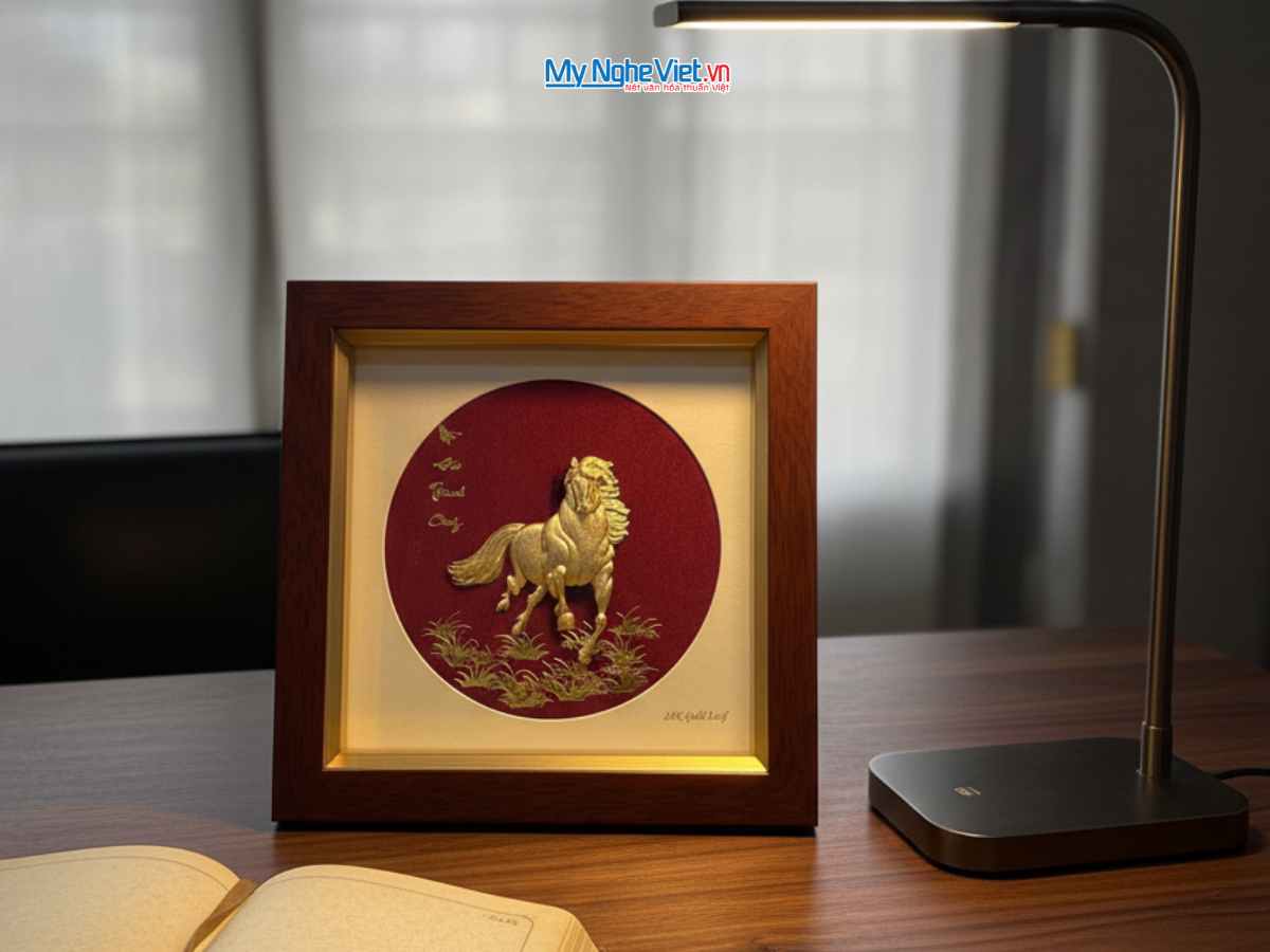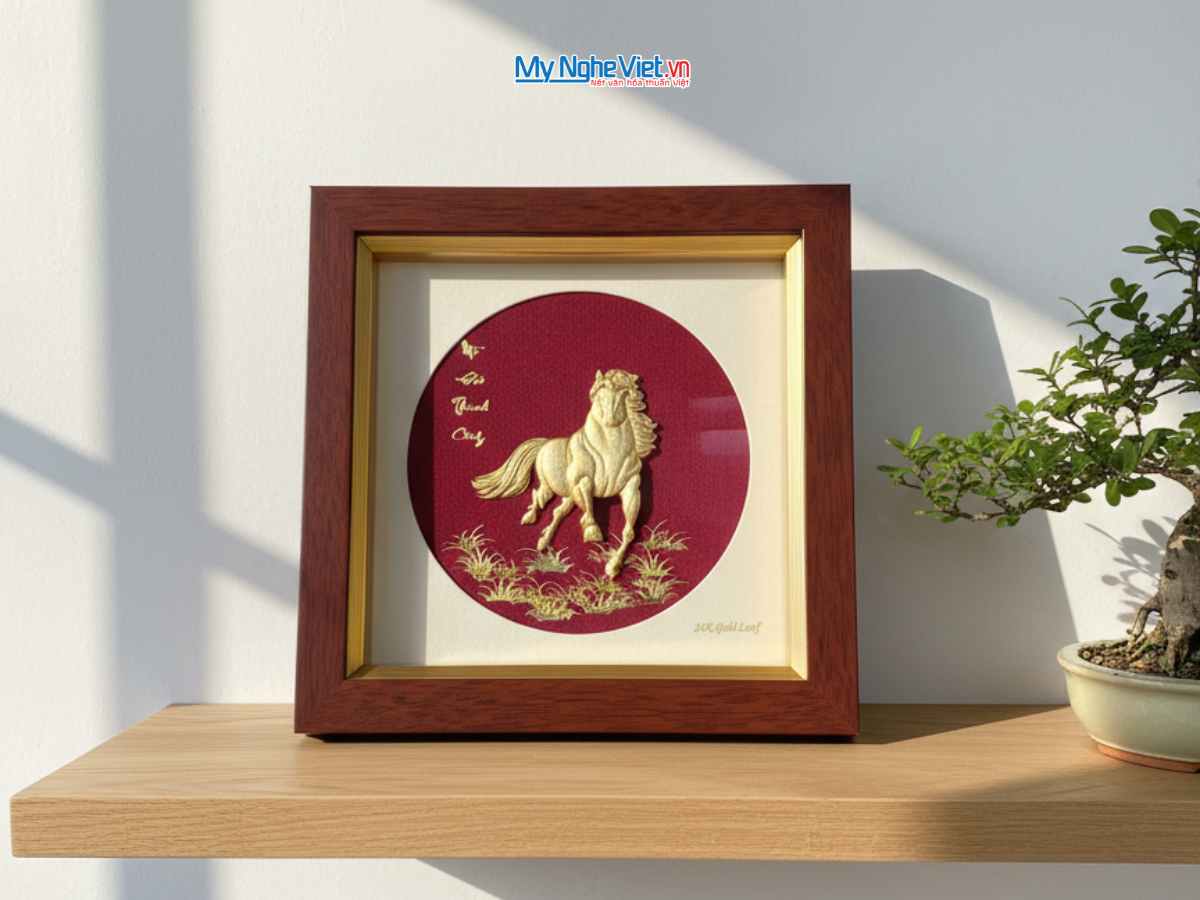 01 Tranh đồng Đại Bái dát vàng 24k 01 Hộp đựng tranh