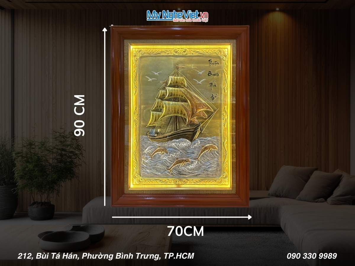 Khi chọn tranh đồng Thuận Buồm Xuôi Gió, bạn nên chú ý đến kích thước của tranh để phù hợp với không gian treo. Tranh quá lớn hoặc quá nhỏ sẽ làm mất cân đối và ảnh hưởng đến thẩm mỹ chung của căn phòng.