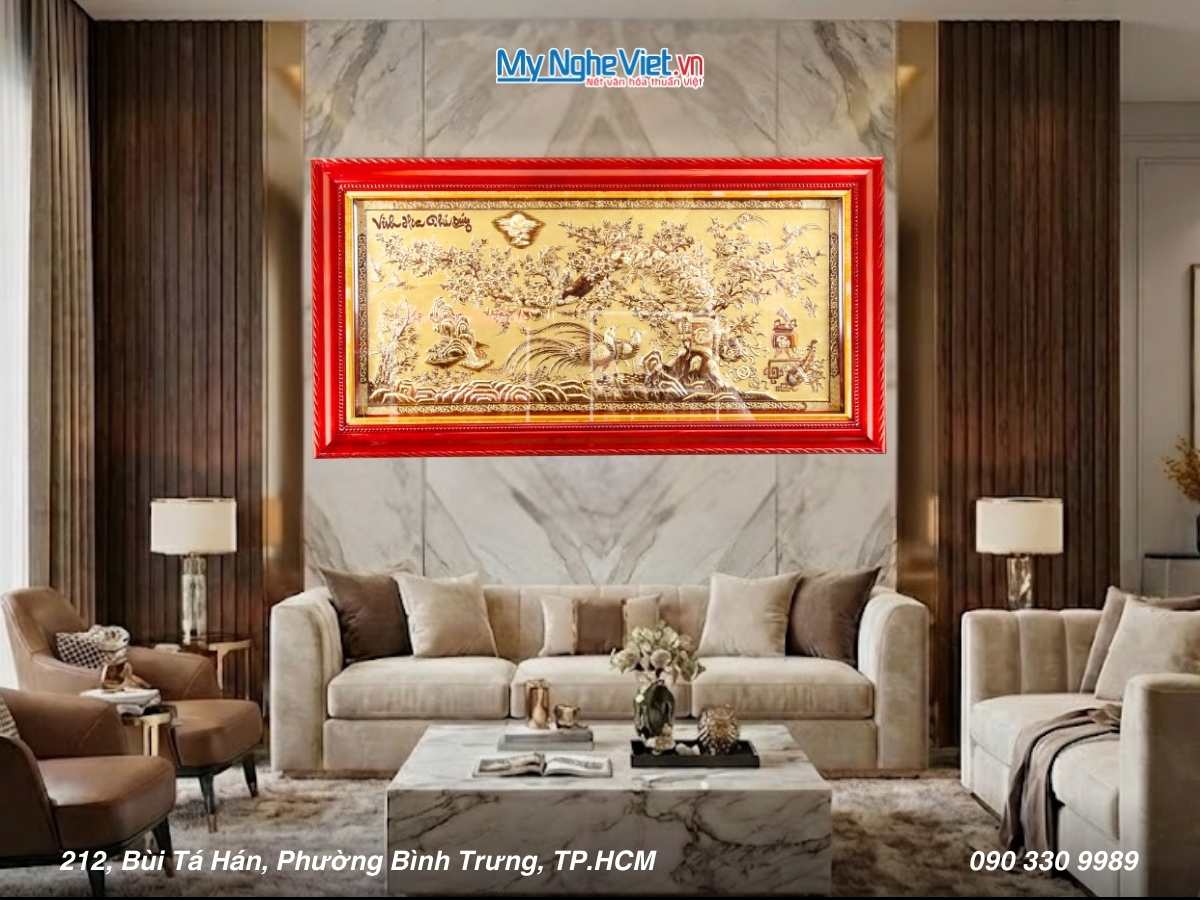 • Tranh Vinh Hoa Phú Quý 24k: Biểu tượng thành công, thịnh vượng, đẳng cấp vượt trội cho món quà tân gia, khai trương.
