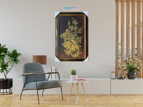 Hoa mai là biểu tượng của mùa xuân, tượng trưng cho sự sinh sôi và may mắn. Treo tranh sơn mài hoa mai giúp mang lại năng lượng tích cực và khởi đầu thuận lợi.