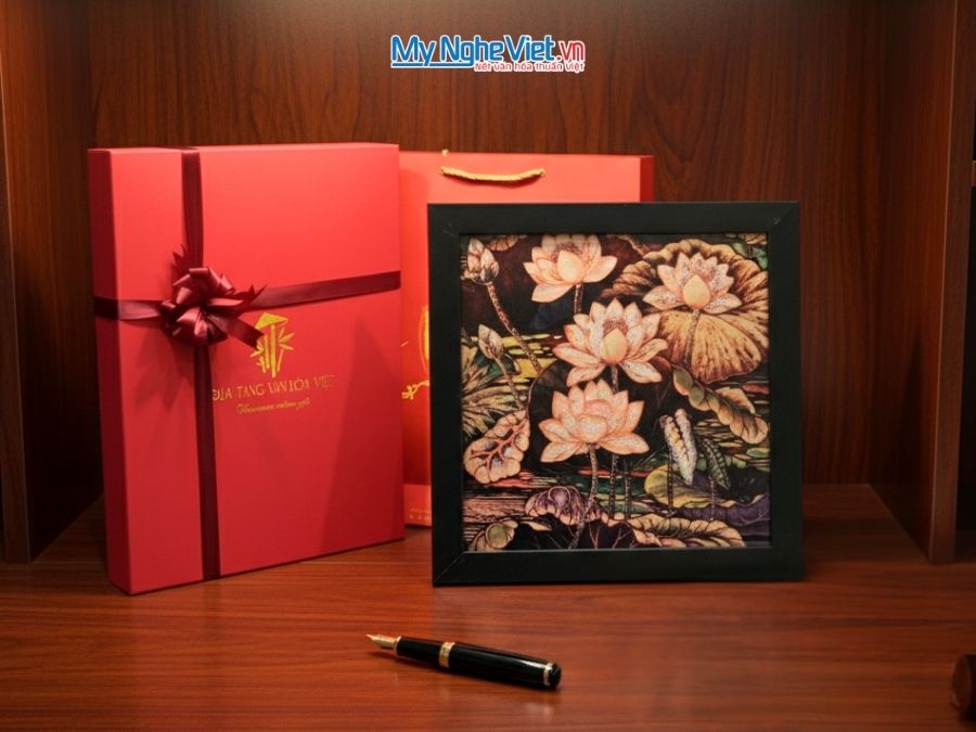 Hãy chọn ngay một bức tranh sơn mài hoa sen để làm mới không gian của bạn.