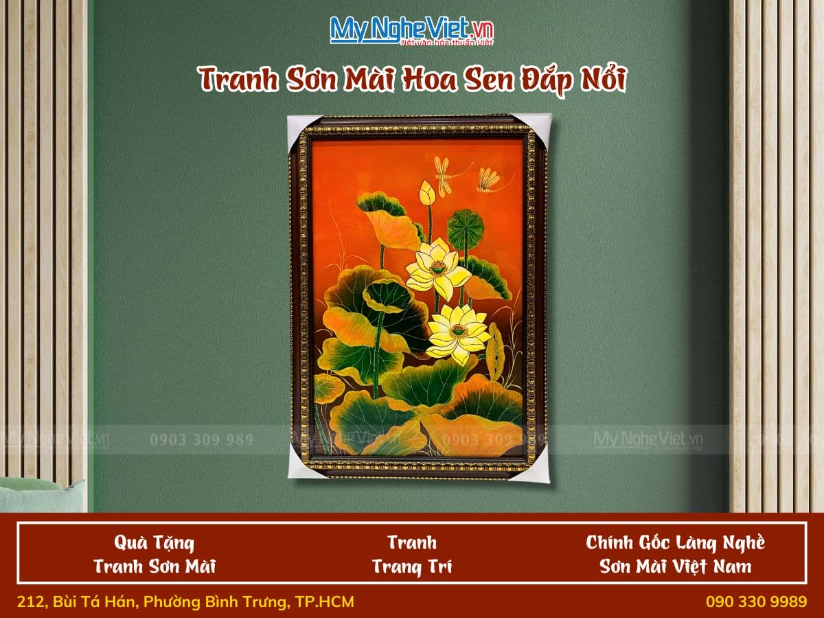 Tranh sơn mài sen đắp nổi là món quà tặng độc đáo, sang trọng cho bạn bè, người thân, đối tác trong các dịp lễ, tết, khai trương, tân gia. Đây không chỉ là món quà vật chất mà còn thể hiện sự trân trọng văn hóa và sự tinh tế của người tặng.