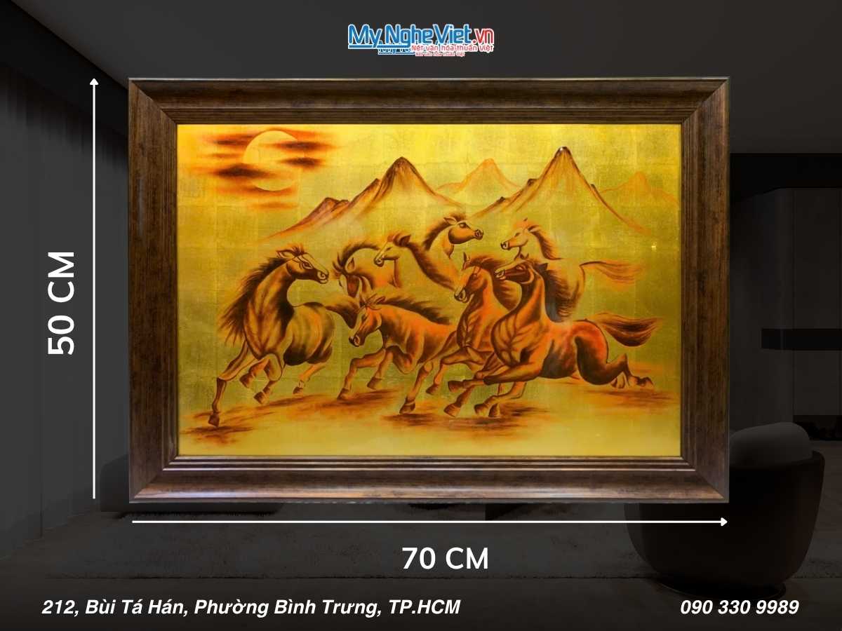 Với kích thước có khung 50×70 cm, tranh phù hợp treo ở các không gian sống như phòng khách, phòng làm việc.