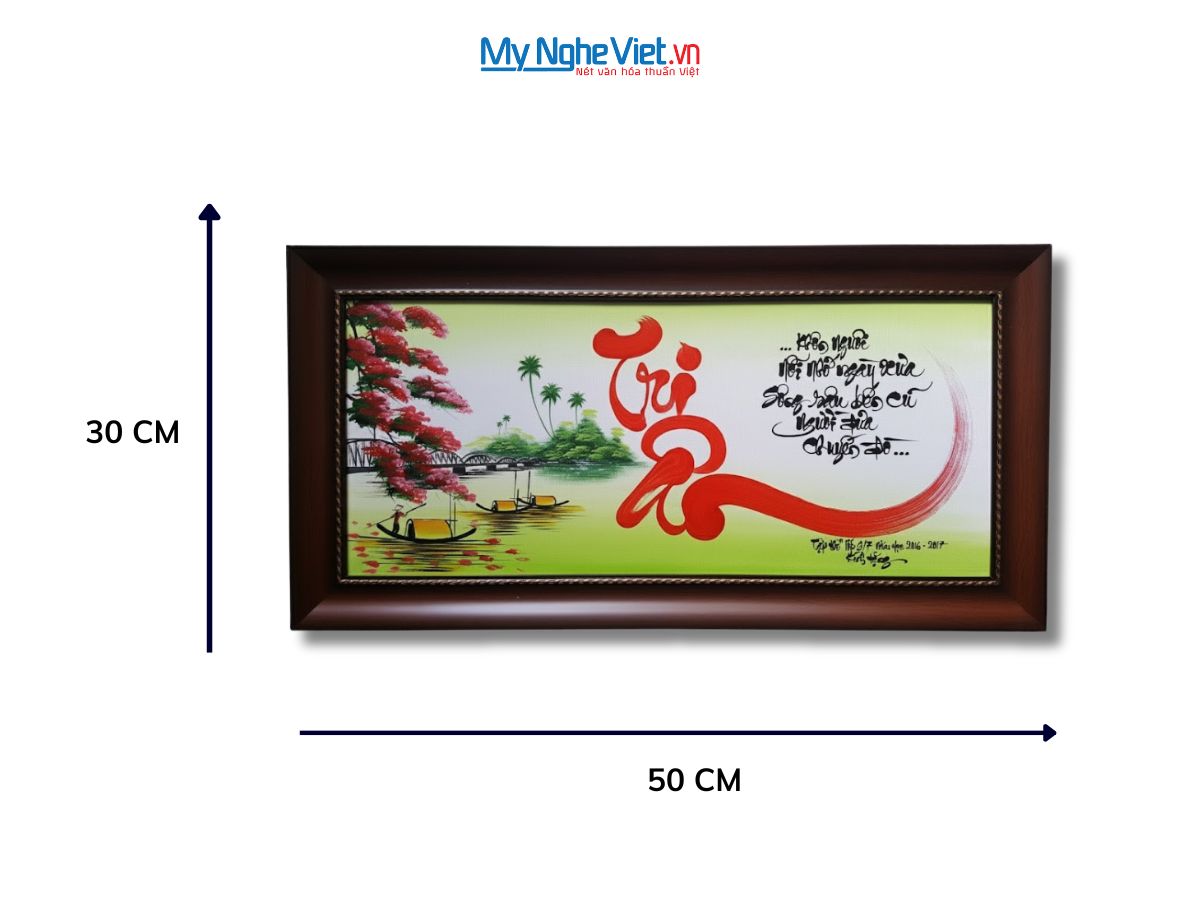 Chất liệu: tranh thư pháp trên nền giấy mỹ thuật, khung gỗ.