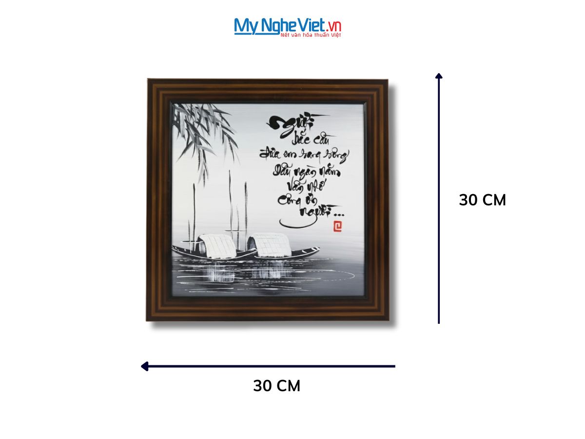 Chất liệu: tranh thư pháp trên nền giấy mỹ thuật, khung gỗ.