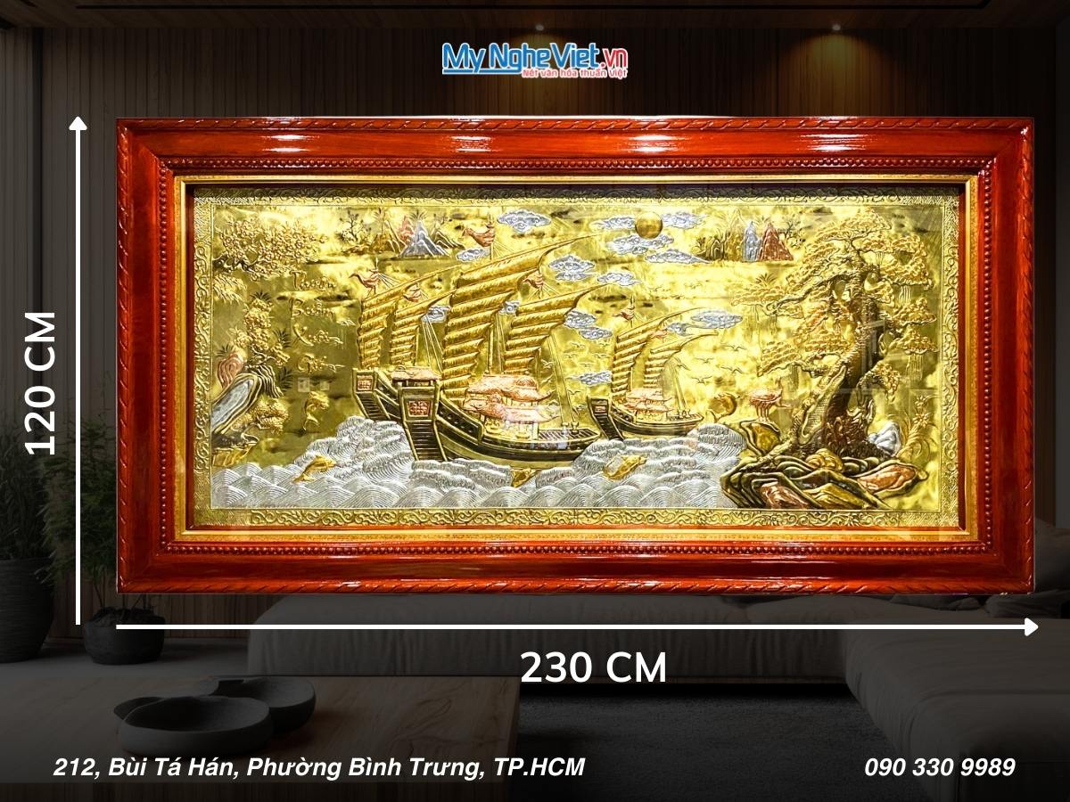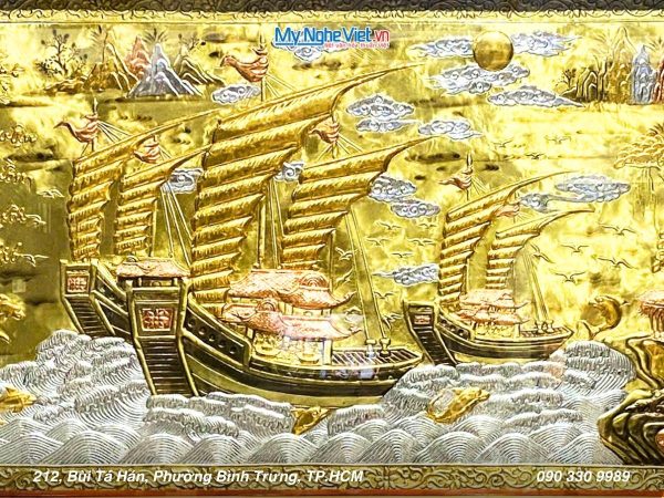 • Bộ sản phẩm bao gồm: 01 Tranh Đồng Thuận Buồm dát vàng có đèn led